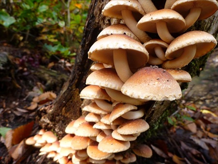 1枚目:クリタケ(食べられますが収穫しませんでした) 2枚目:立派なぶな 3枚目:幽玄の世界 4枚目:ナメコはまだまだ小さかった・・