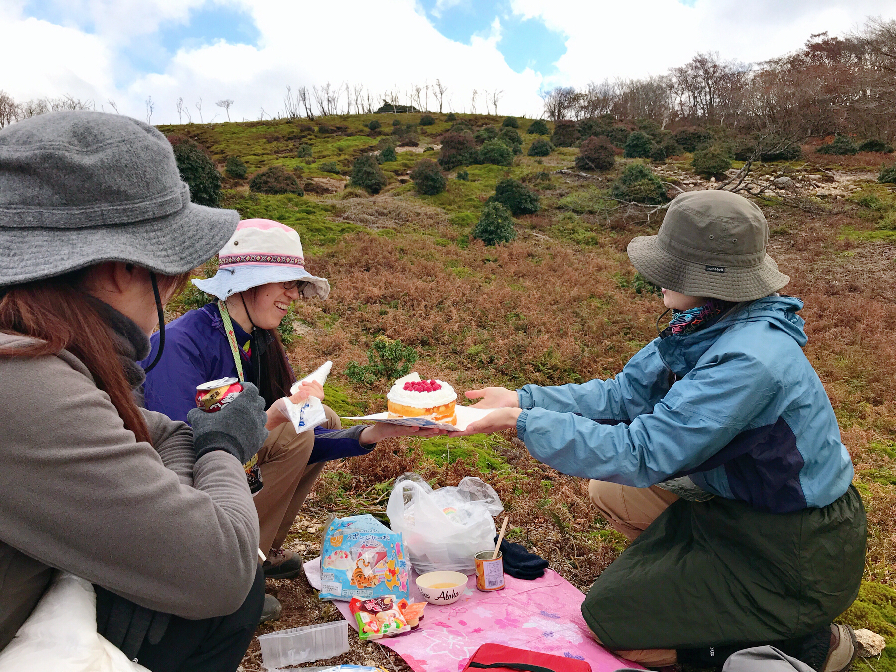 あの織田信長も通ったという千種街道の通り抜け。これ、意外に歩く機会に恵まれないんです。紅葉ピークの時期で最高でした。 食担まるちゃんの中華定食は本人納得していないようですが、山で食べるゴハンのレベルを超えてます。そして誕生日重なりで女子力結集のケーキはとっても可愛い! ごめんなさい。私は飲んだくれて何もしてません。 道中ずっと5テンを担ぎきったリーダーのたばっちに感謝です。 |