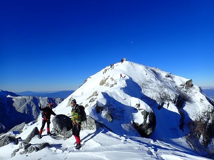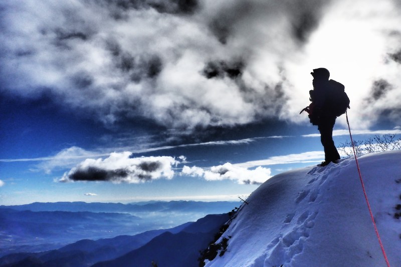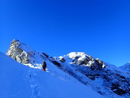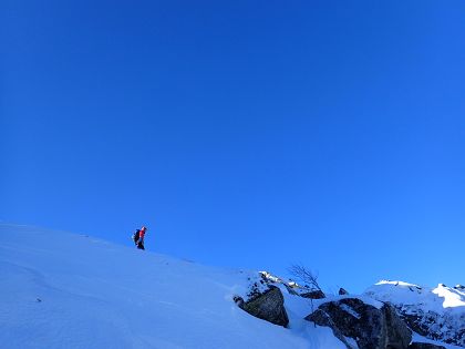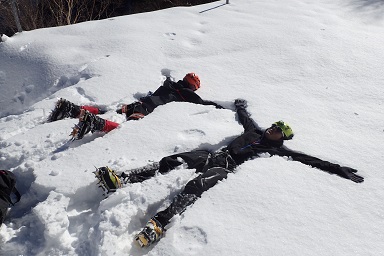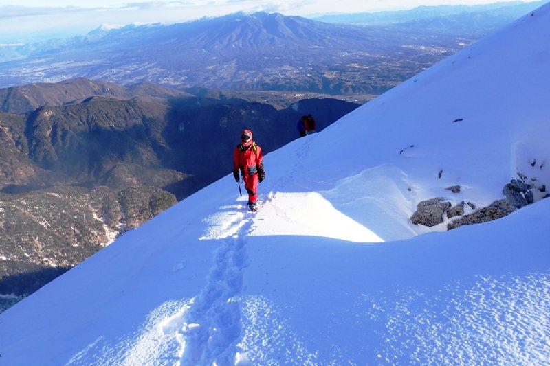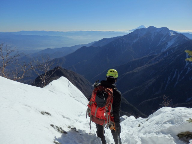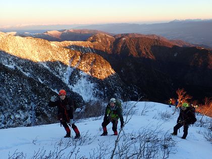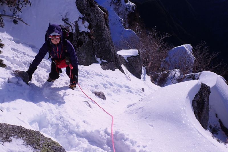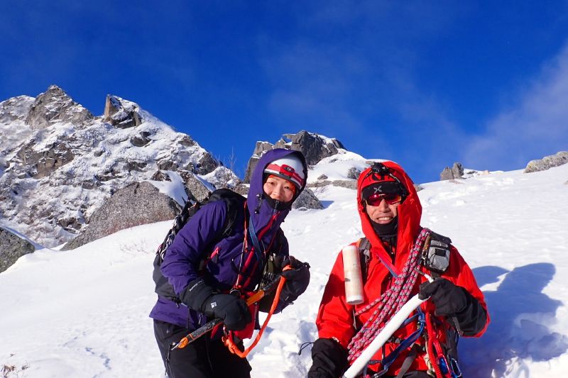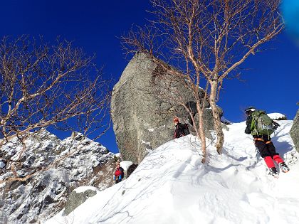 緊張する場面をありましたが、快晴無風の絶好のコンディション。 厳しい登高を楽しめました。