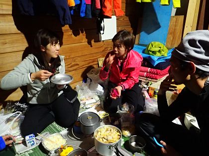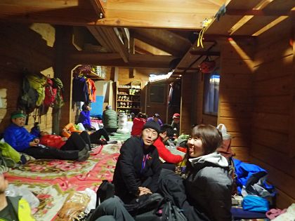 やっとの思いでたどり着いた七丈小屋は暖かくて天国。