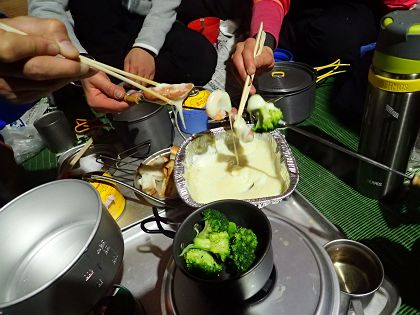 1枚目:七丈小屋 2枚目:中は天国 3枚目:味はどうかな 4枚目:チーズフォンデユ |