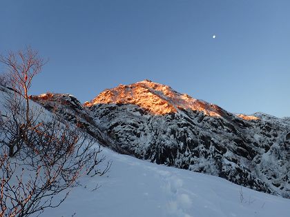 ラッセル&トレース無しとの情報に各パーティー様子を伺い、みんな出発しません。 それでもしびれを切らして6時に一斉にスタート。8合目までは最中状の雪に踏み抜き地獄。難渋しましたがそこから上は快適でした。