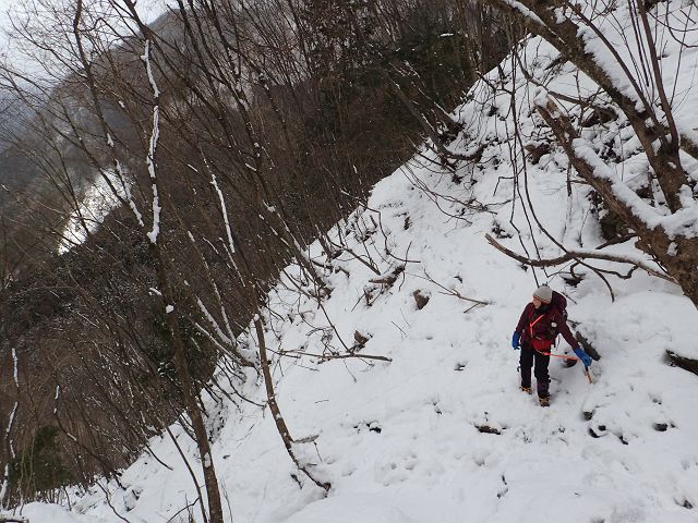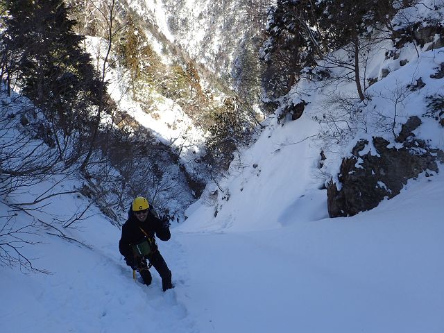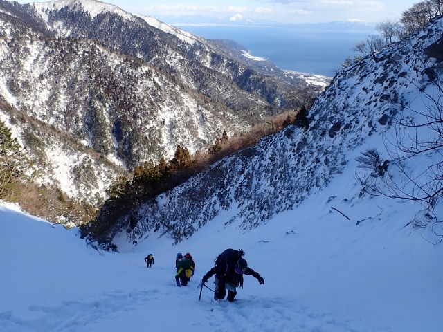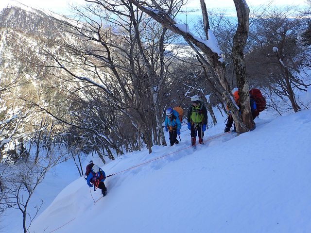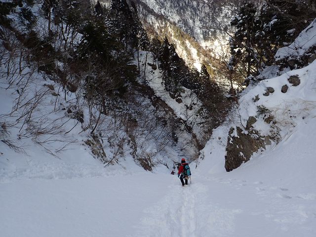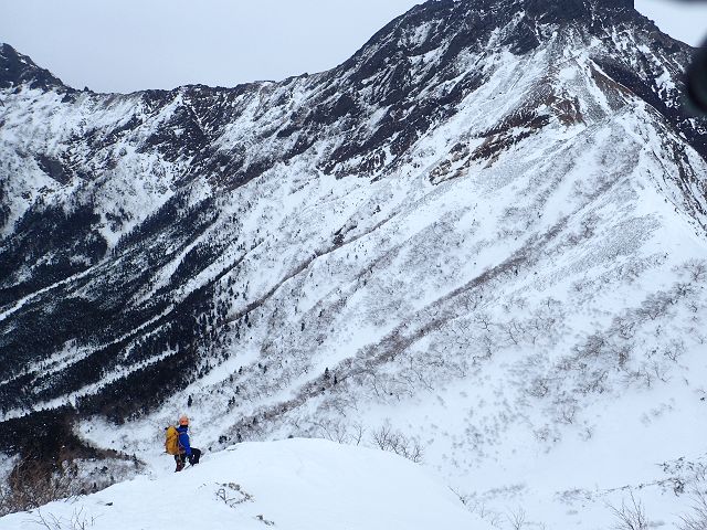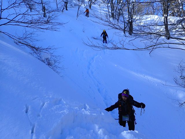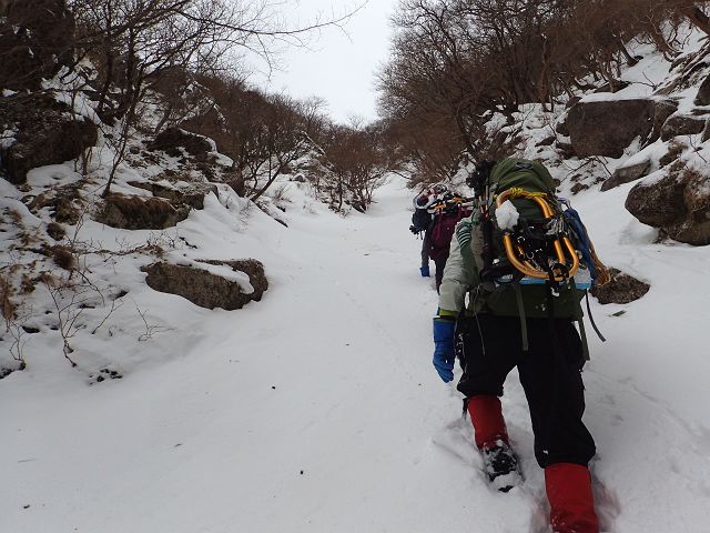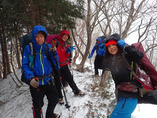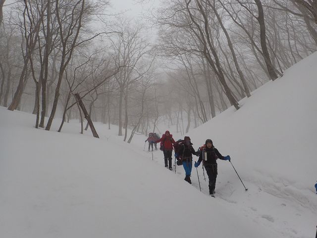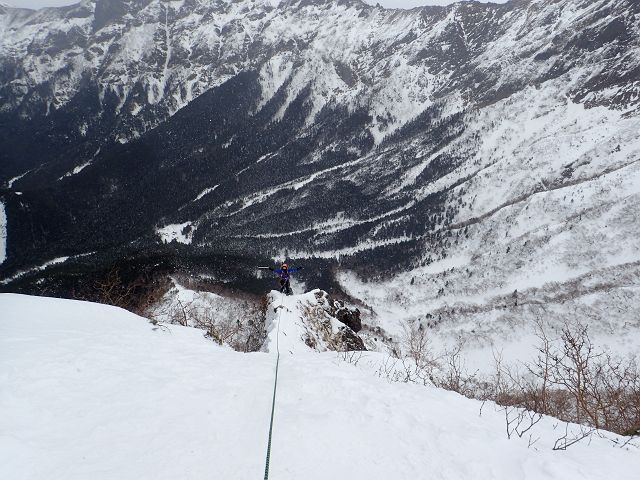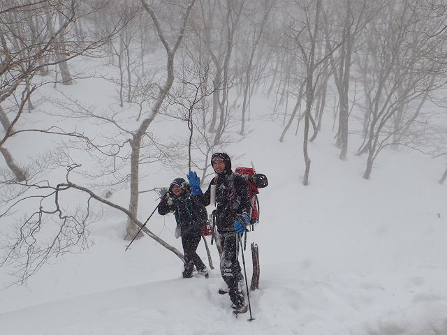 トレースの無い三口谷をラッセルし、ダイレクトルンゼをラッセルし、 何とか雨が降る前に鎌ヶ岳から降りて来る事が出来ました。