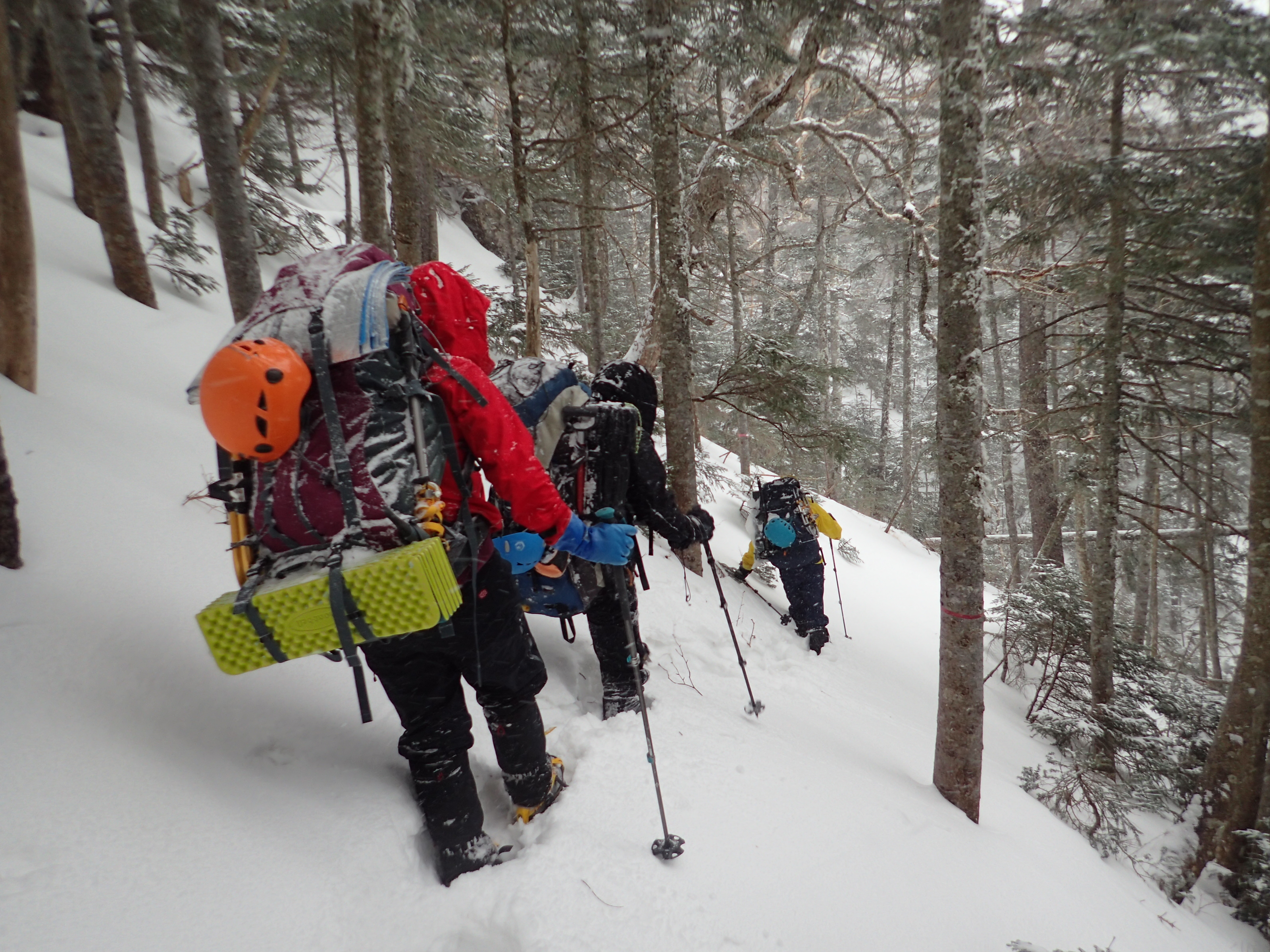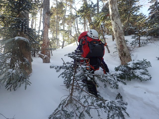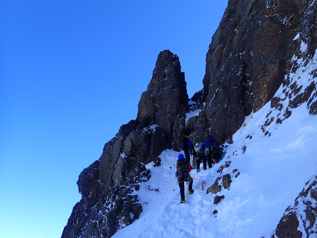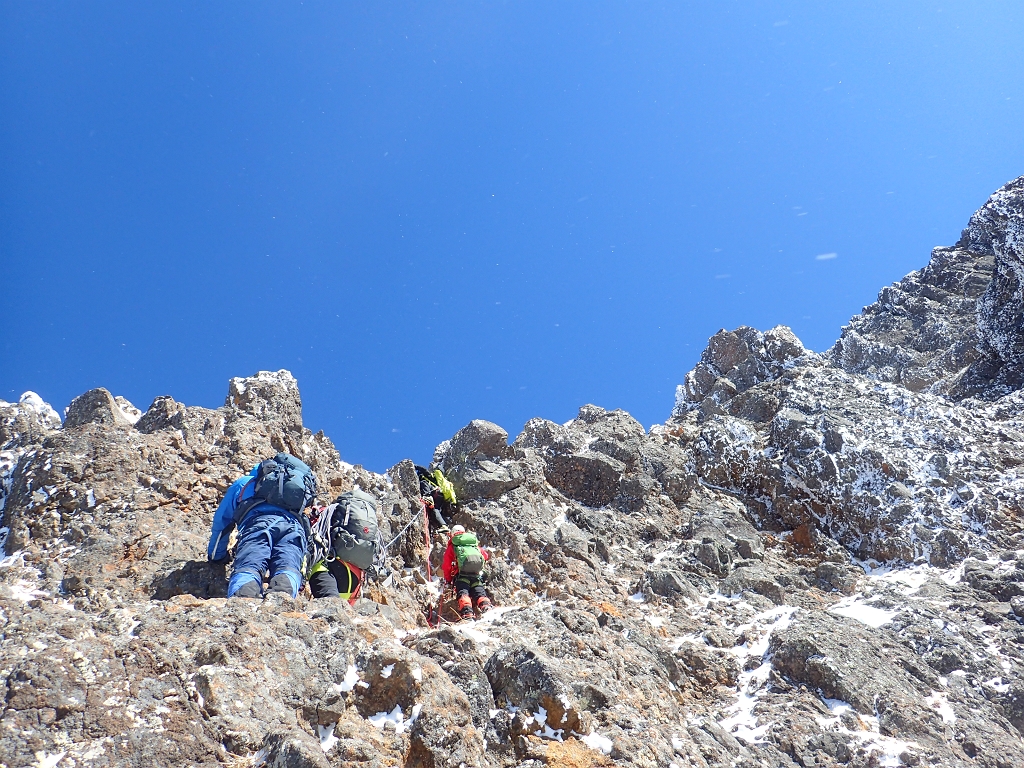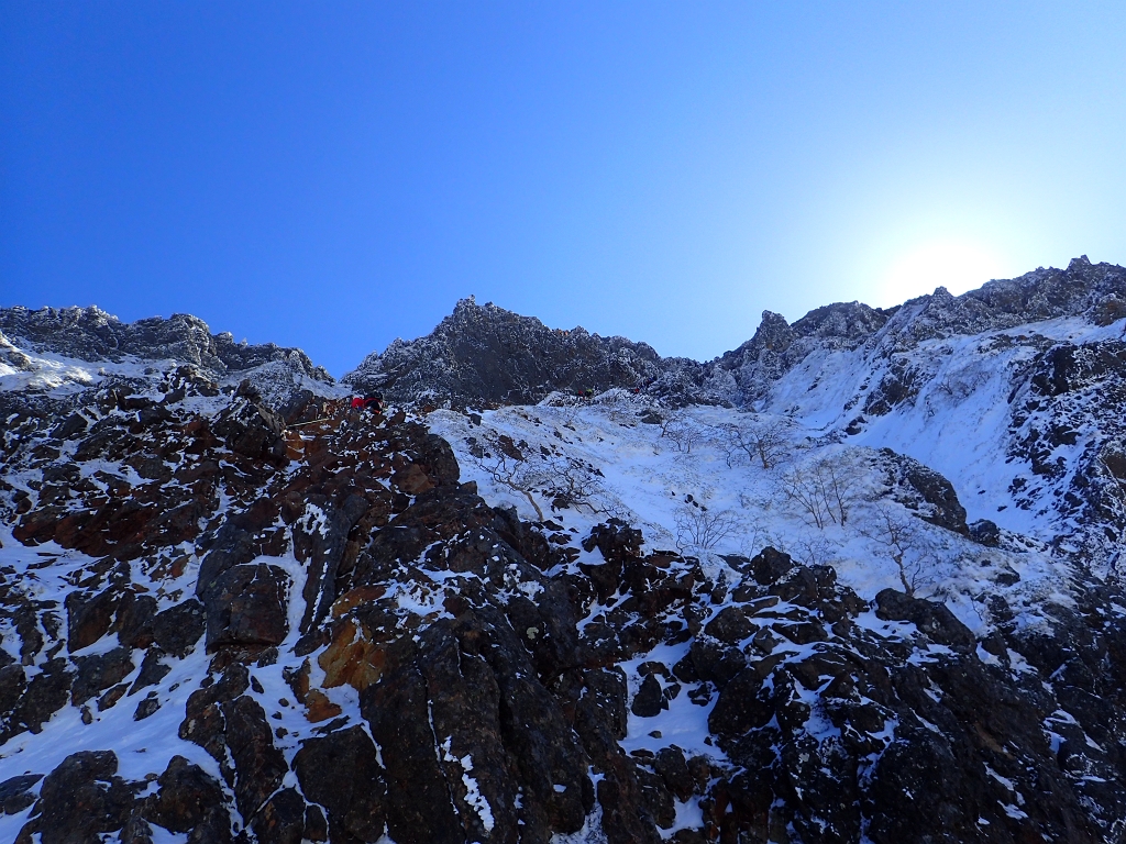 左側のルートを行くパーティ、かなりもろいらしく氷がどんどん落ちてくる。 その後どんどんパーティが増えて3ルンゼ大渋滞。 早めに着いていた私達は早く引かなきゃなぁって…何となくその圧に負け撤収〜笑 でもしっかり楽しんだので満足。