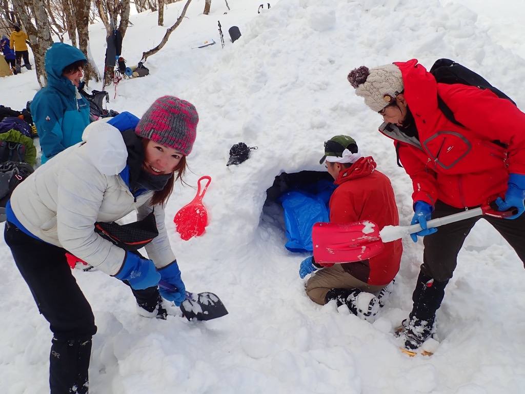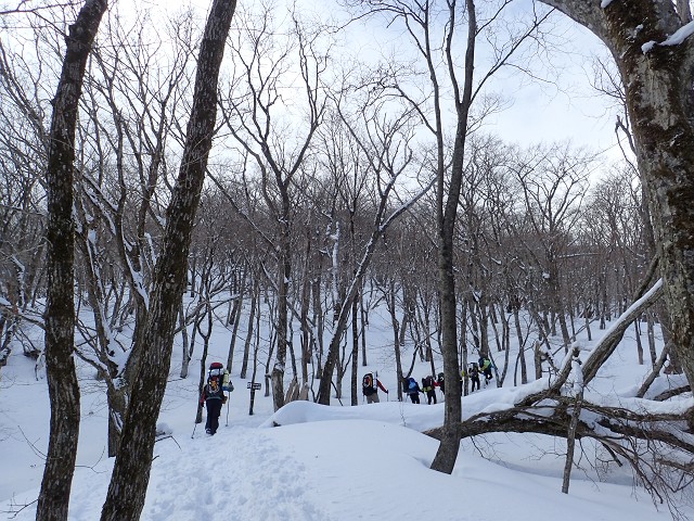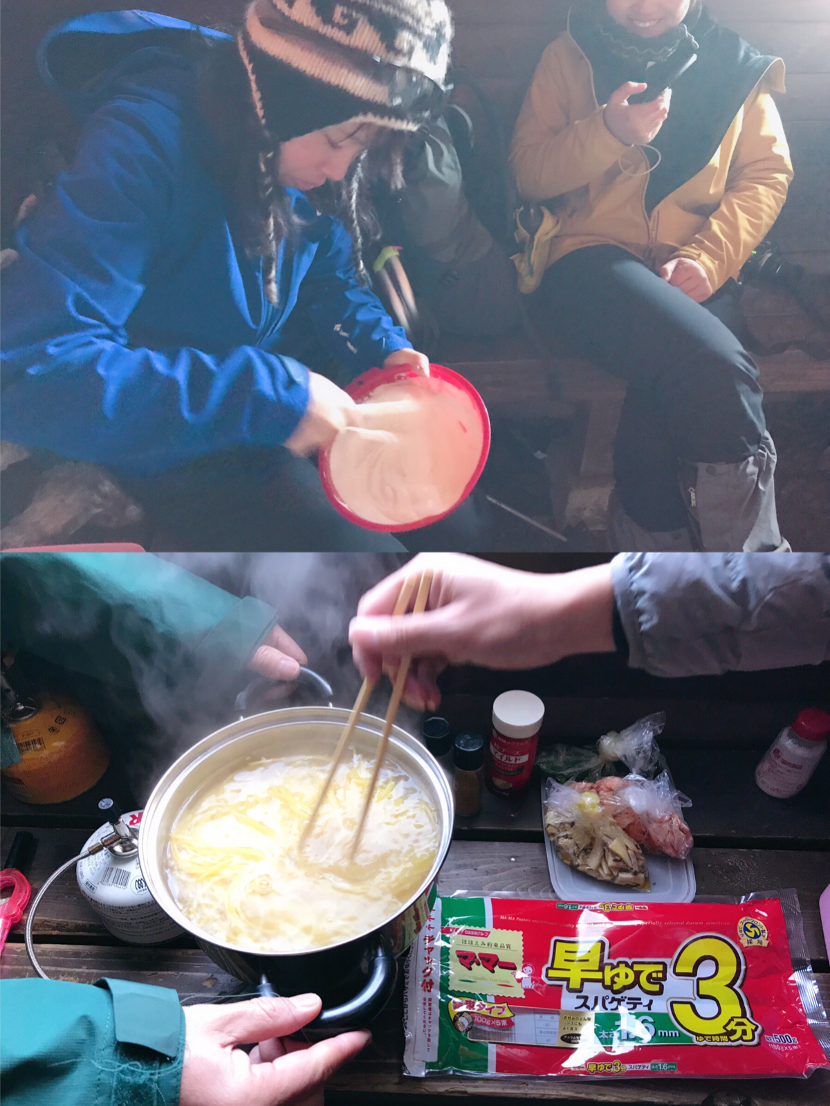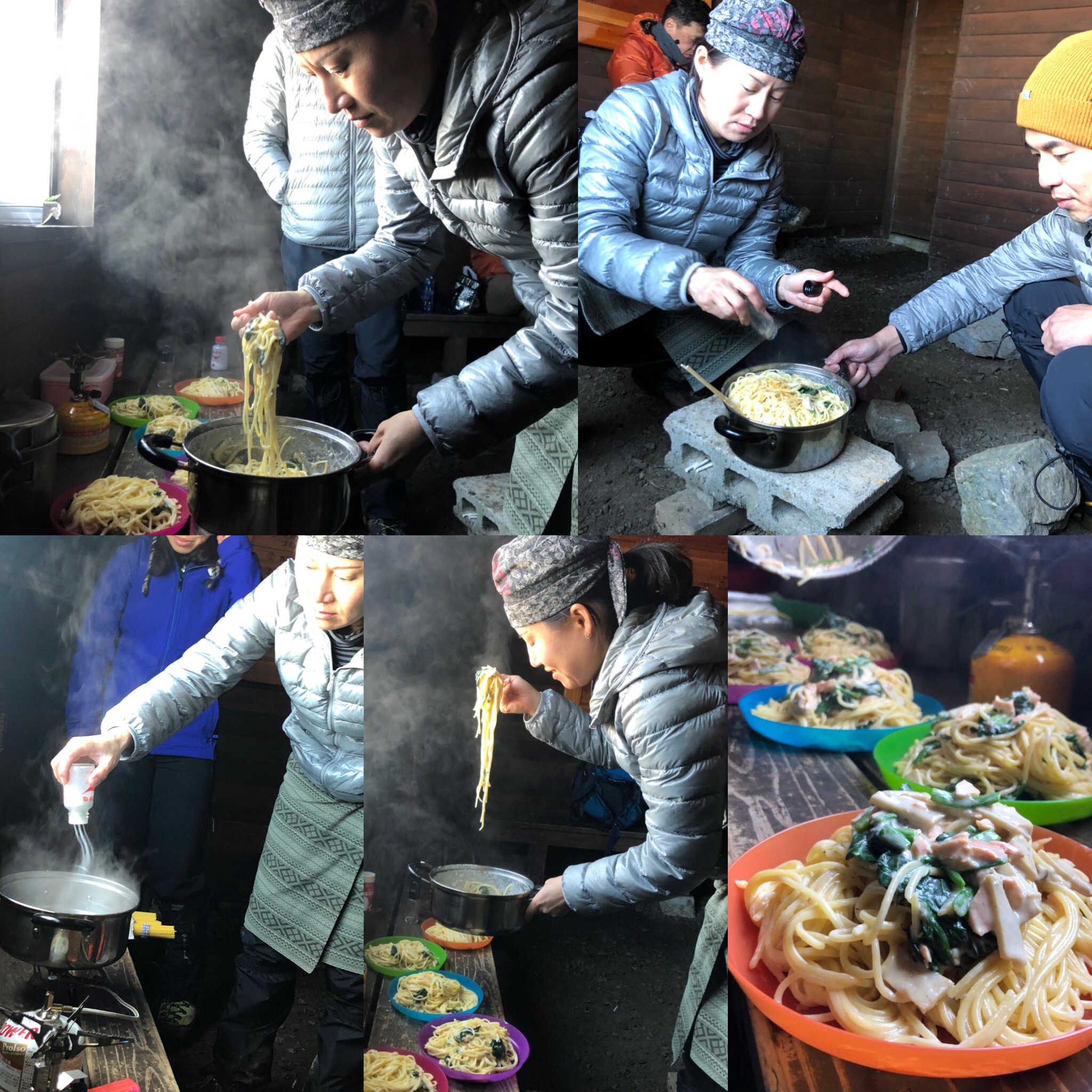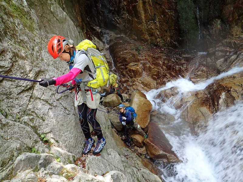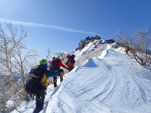 左側のルートを行くパーティ、かなりもろいらしく氷がどんどん落ちてくる。 その後どんどんパーティが増えて3ルンゼ大渋滞。 早めに着いていた私達は早く引かなきゃなぁって…何となくその圧に負け撤収〜笑 でもしっかり楽しんだので満足。
