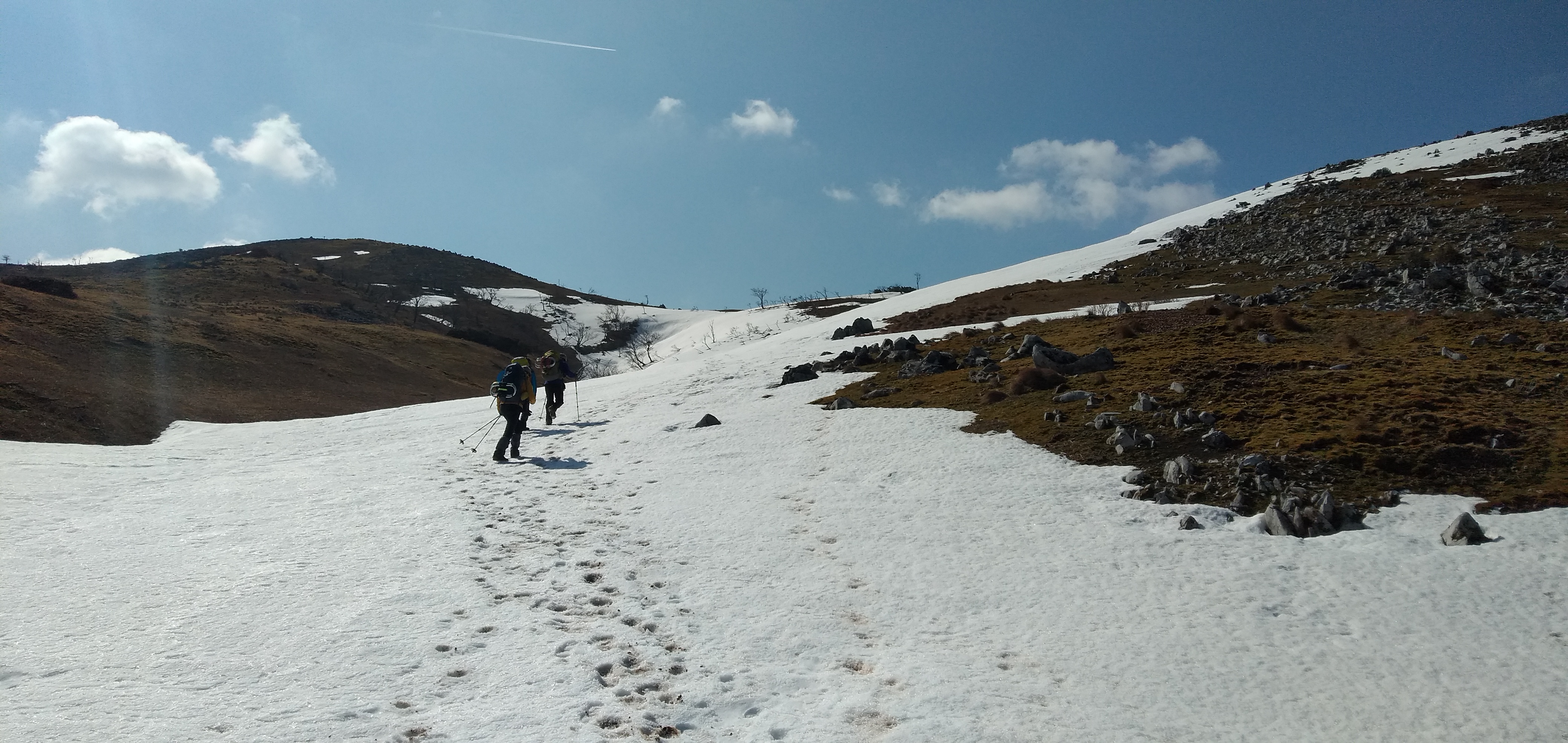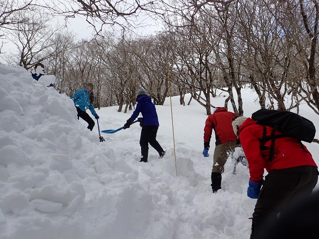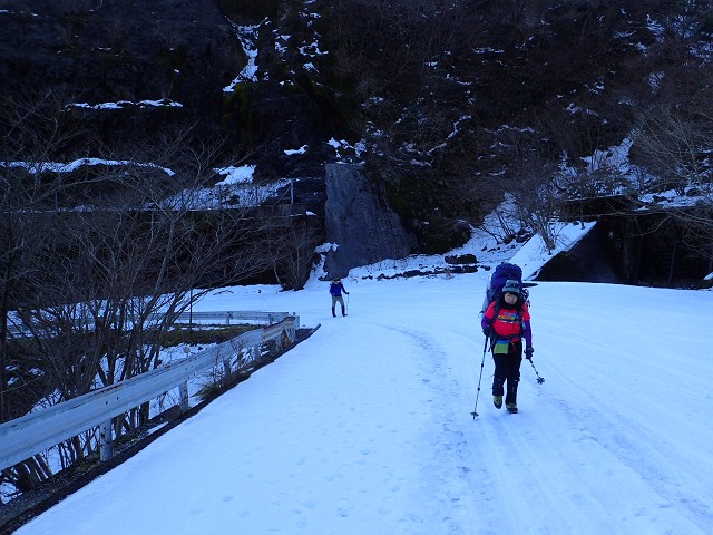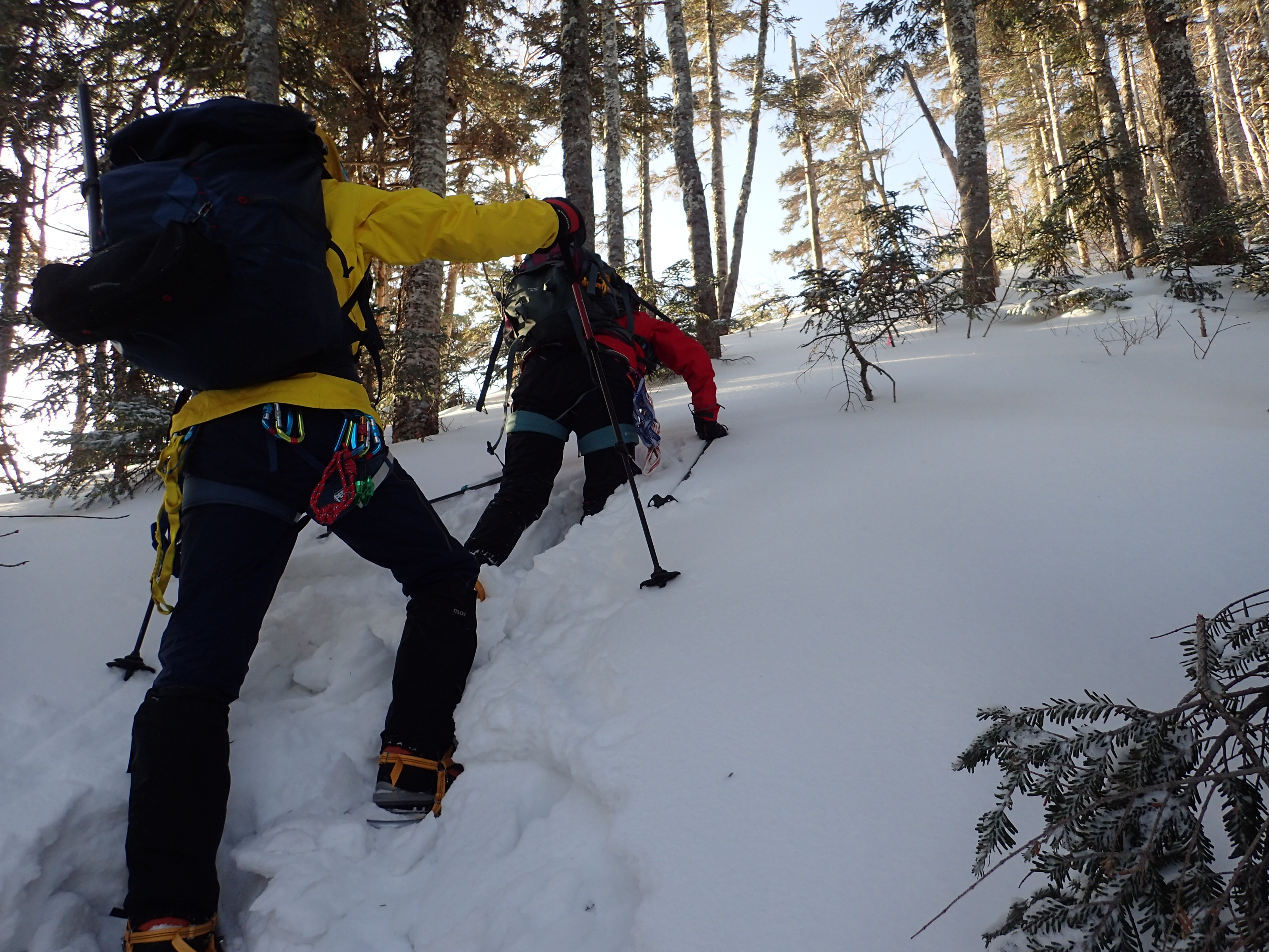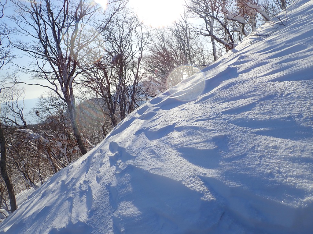 昨日は風もなく、寒くもなく、絶好のアイス日和でしたが、氷が、、、 ここ数日の陽気でかなり溶けてしまっていました。 3本あるルートのうち左のルートは氷の裏に水が流れており、かなり危ない状況。真ん中から上がって、右の終了点でトップロープの支点を構築。 それから各自4本程度登ってお昼に。 後から来た人が、『登らせて下さいってことになり、代わる代わる登りだす。そうこうしている間に風が出てきて、『もう帰ろか〜』 もう少し遊びたかったので、もう一回チャンスをうかがいたい。 |