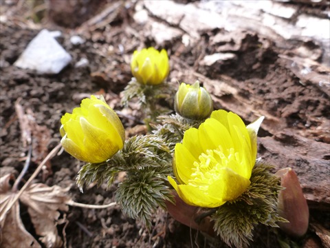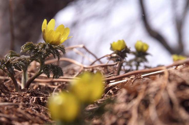 3月は鈴鹿の外で雪遊びばかりしていたので、福寿草は無理かな〜と思っていましたが、何とか滑り込みセーフで間に合いました。