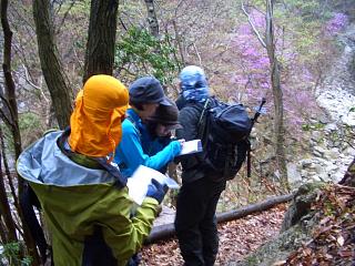 1:準平原を行く。メンバーの人数が足りない!? 2:なぜかリーダ−しか見られなかった聖宝寺の桜。 |