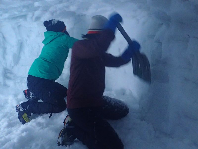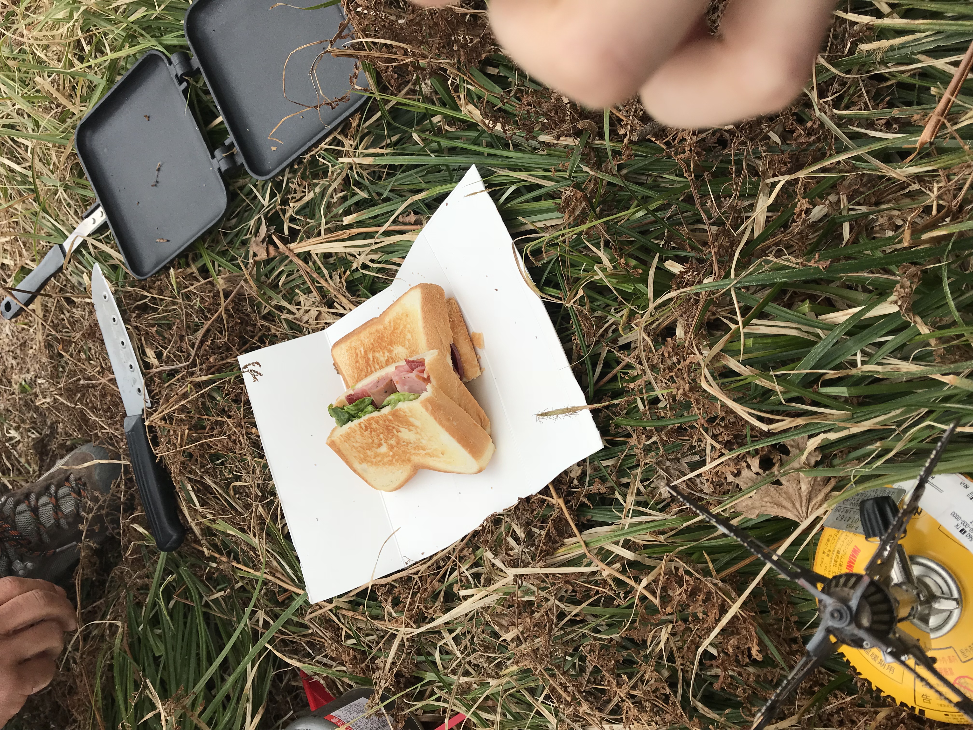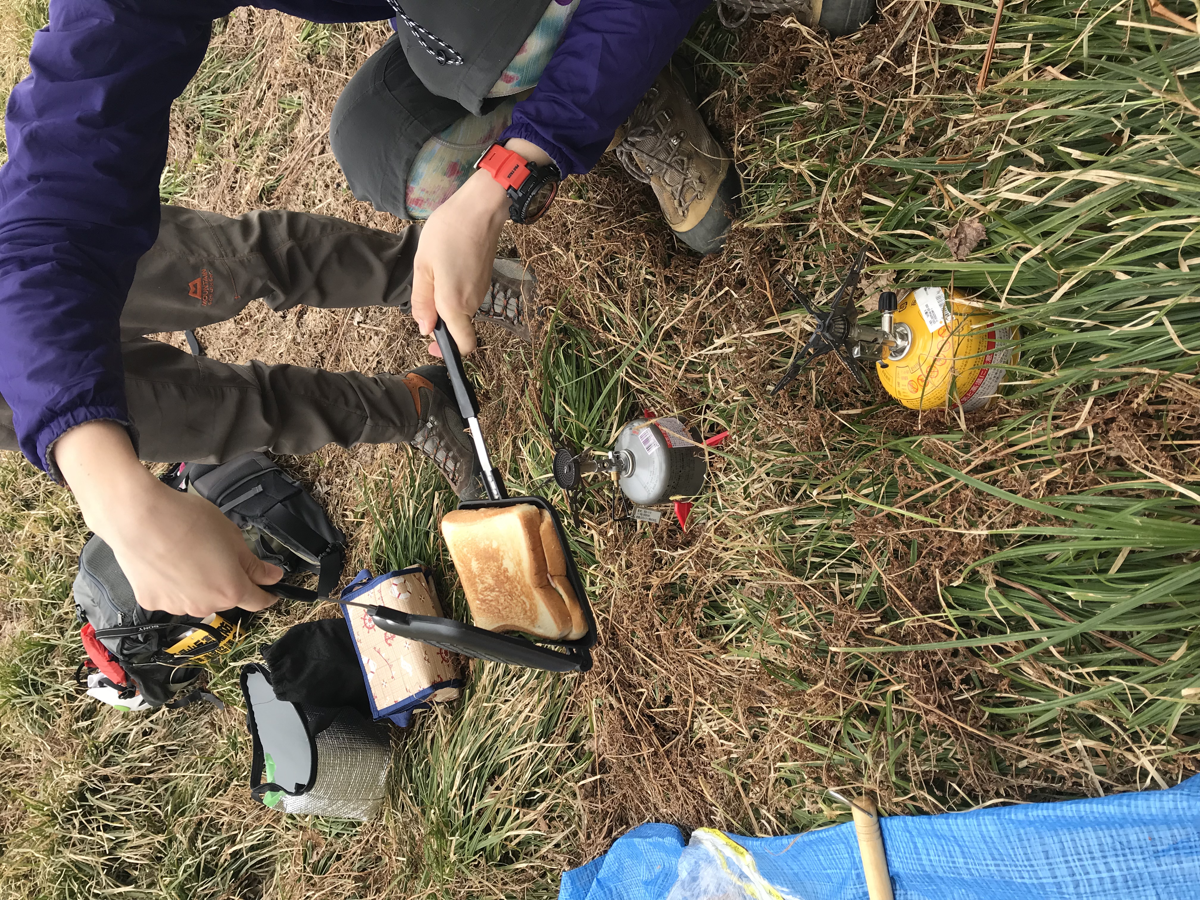 夜中に冷え性のやっさんのツエルトからガサガサと試行錯誤する音が聞こえてきたので、自分より弱ってる人間がいることでちょっと気持ちに余裕が出ましたが、もちろんよく寝られず翌朝はズタボロに。。。遭難って大変です。 それでも寒さに耐えられることがわかったので自信がつきました!