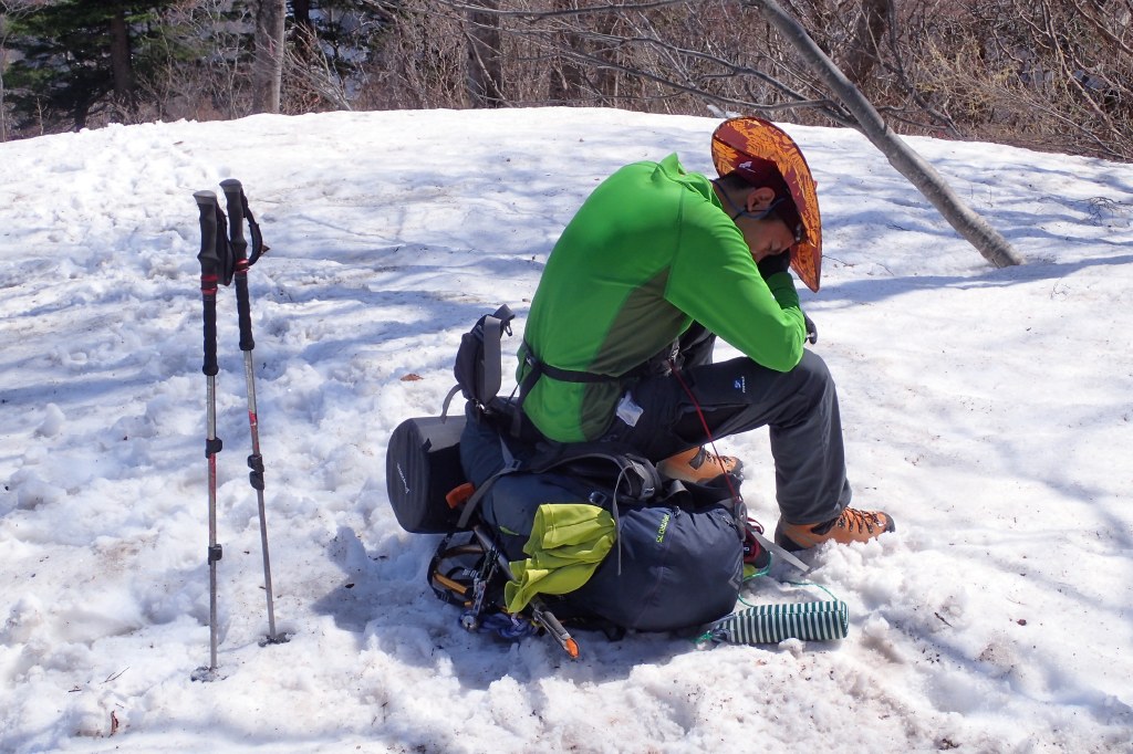 私は遭難にリアリティを持たせる為通常持ち歩くもののみで臨みました。春山の想定なのでフリースは諦めてユニクロダウンのみ!保険で車にあった毛布をザックに忍ばせましたが誘惑に負けることなく、中間着にダウン+レインウェアでサバイバルシートにくるまりながら一夜を乗り切りました。