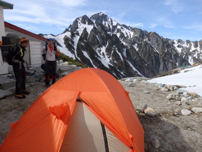 劔沢のテン場は雪の無い平坦地にテントが張れてノンビリ劔岳を眺める事が できました。