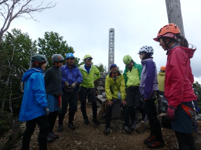 劔岳一番乗りはえだちゃんに譲って、岩場をひと登りで頂上へ 天気は予報が外れて夕方まで晴天、360度の絶景を楽しみました。