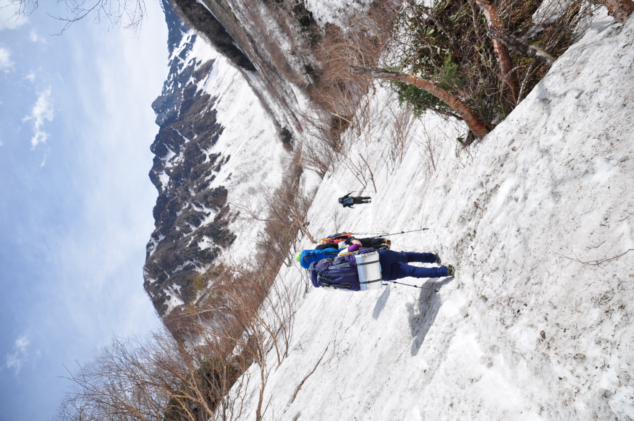 少しだけ残っている雪に戸惑う場面もありましたが、高度感を楽しみながら快適に登ります。