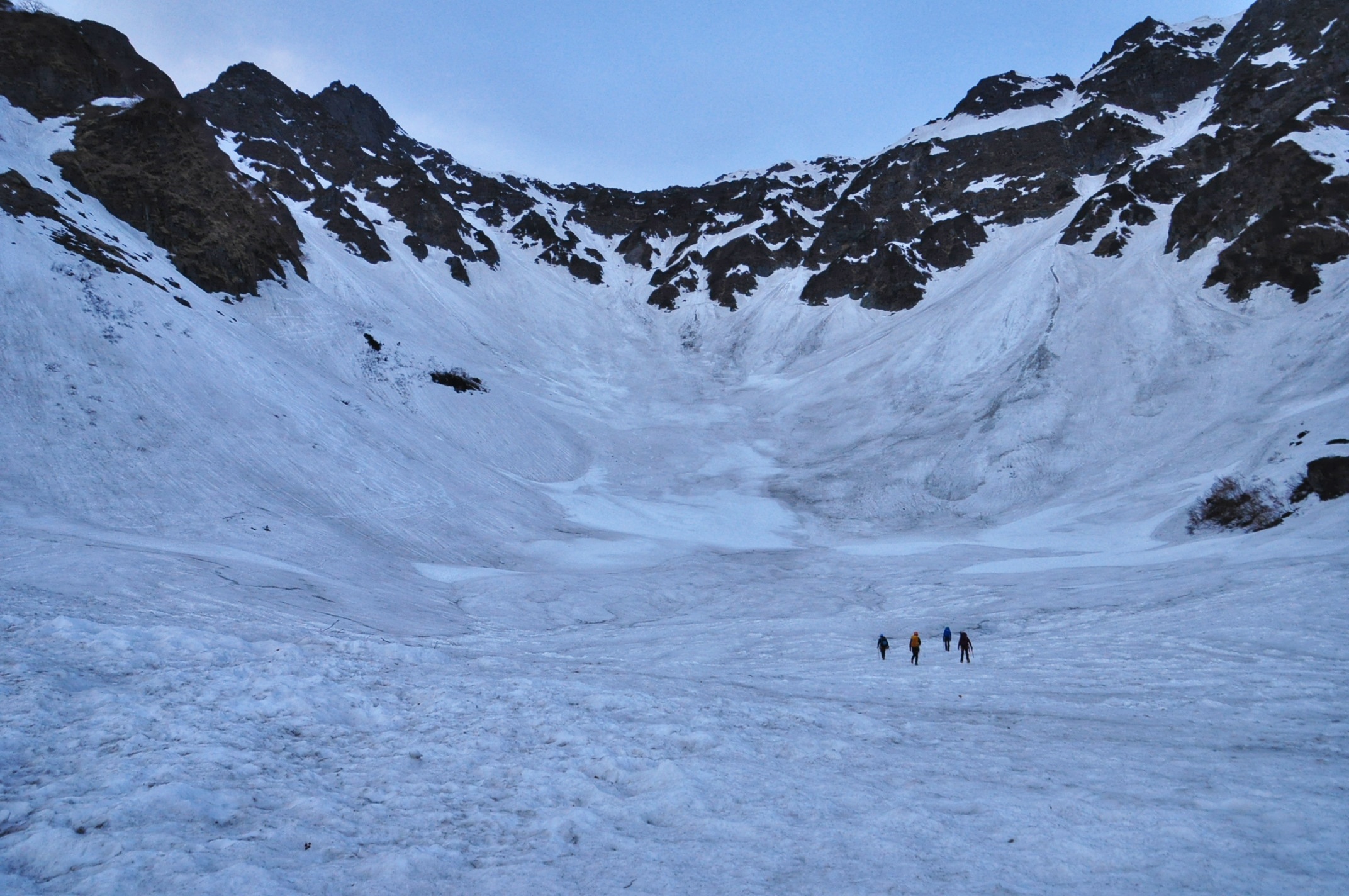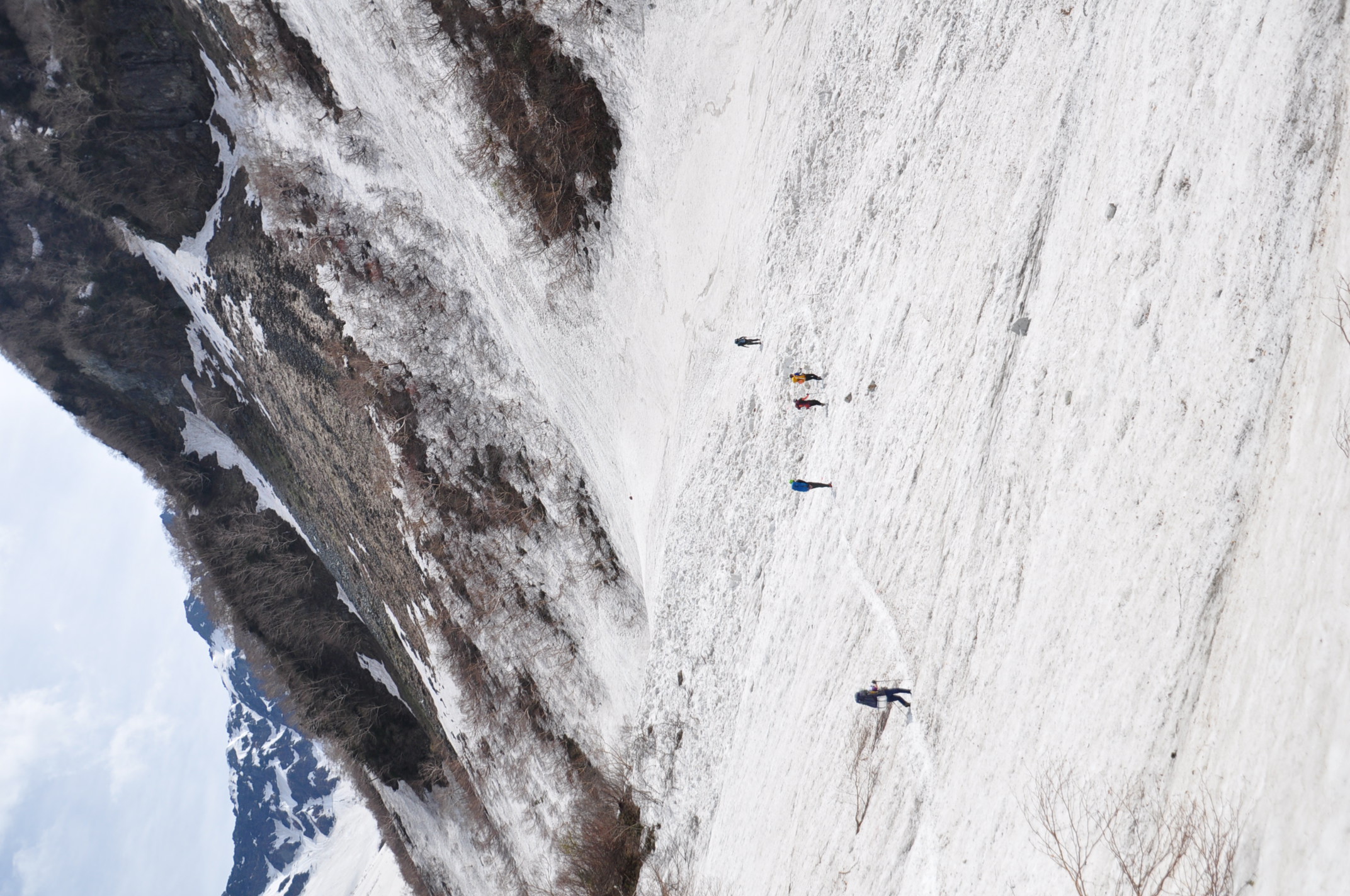 ただ、下山では思っていたのと違う雪渓を降りてしまい、あまりの急傾斜に半泣きになりながらバックステップ。