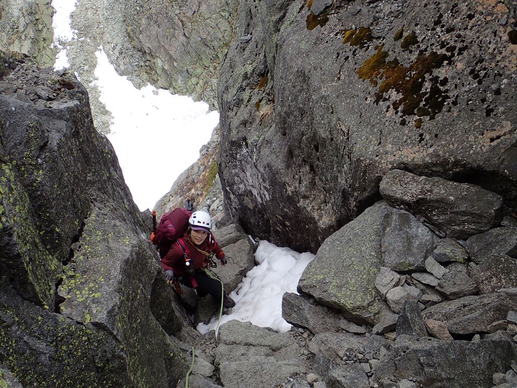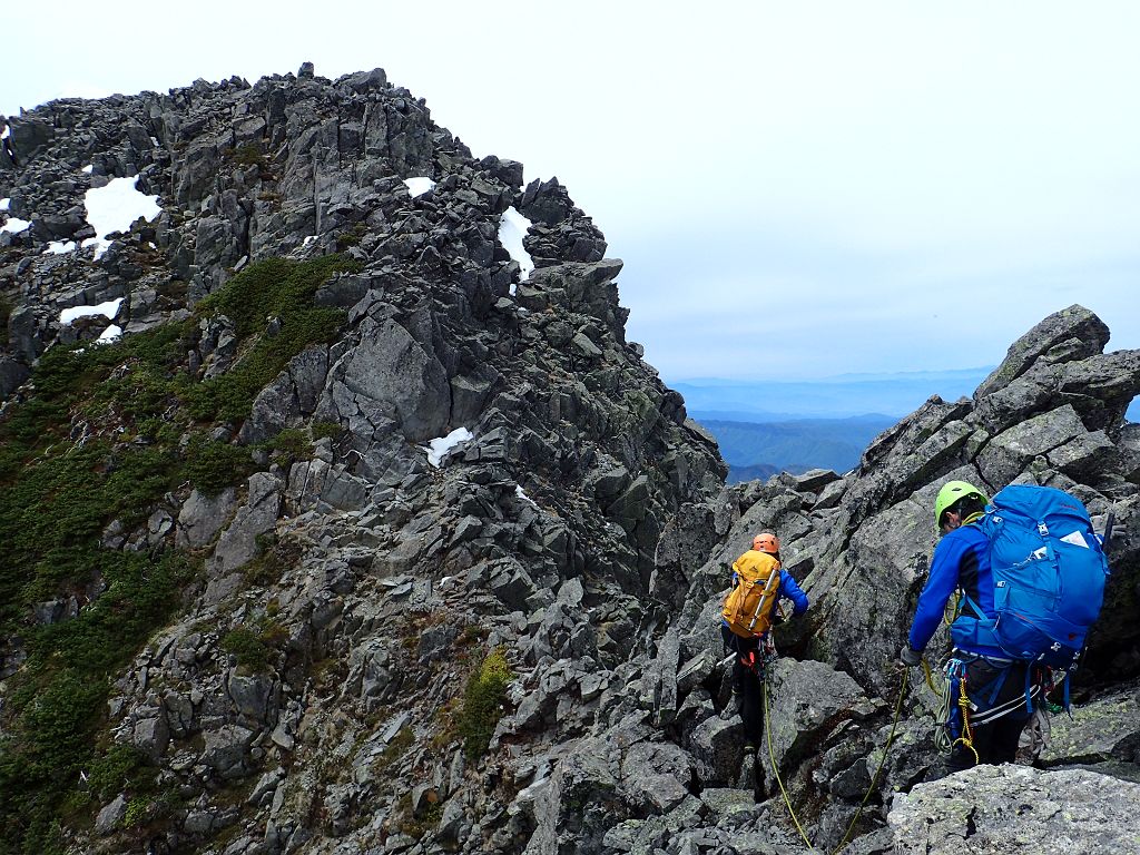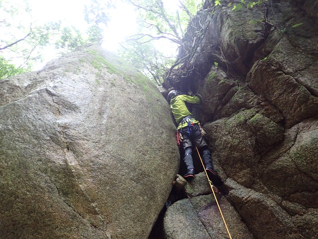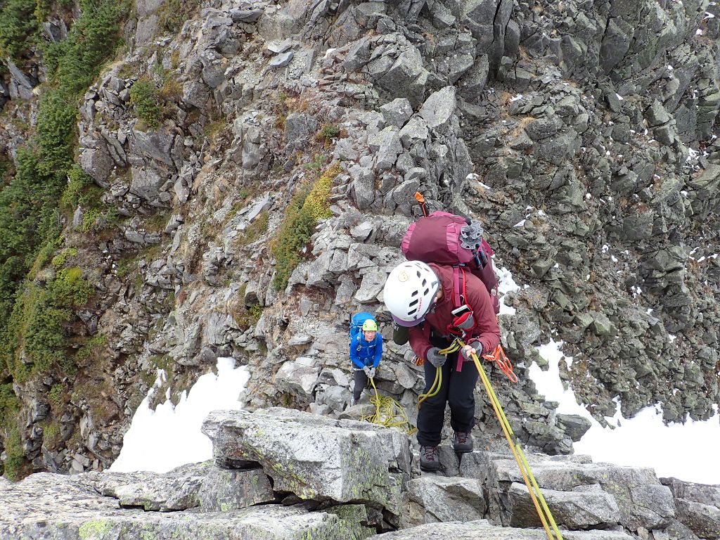 高度感のある4峰を超えて核心の3峰でいよいよロープを出します。