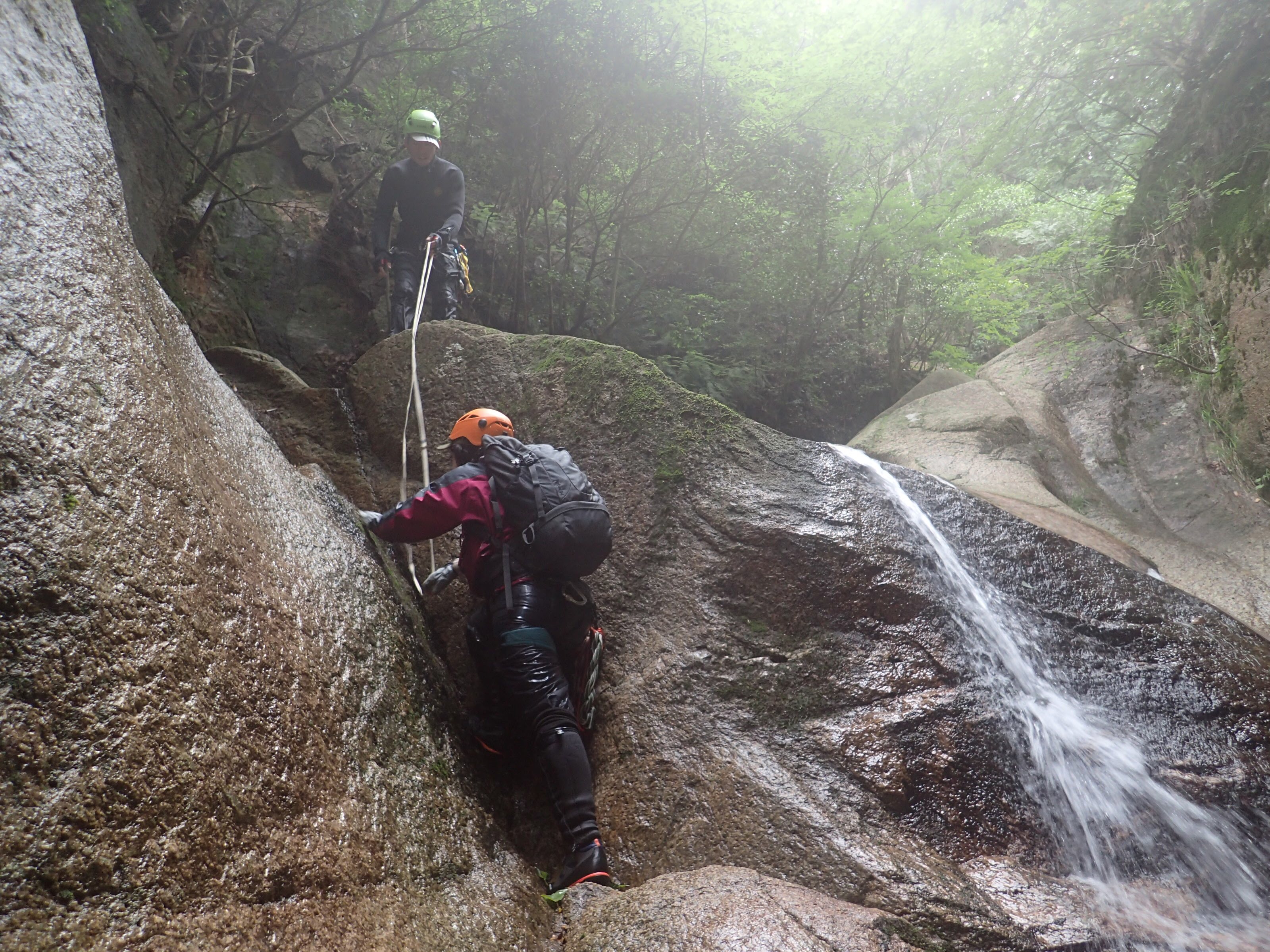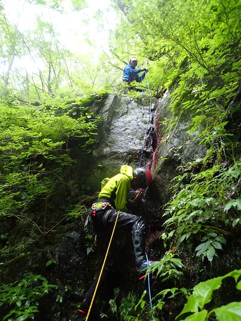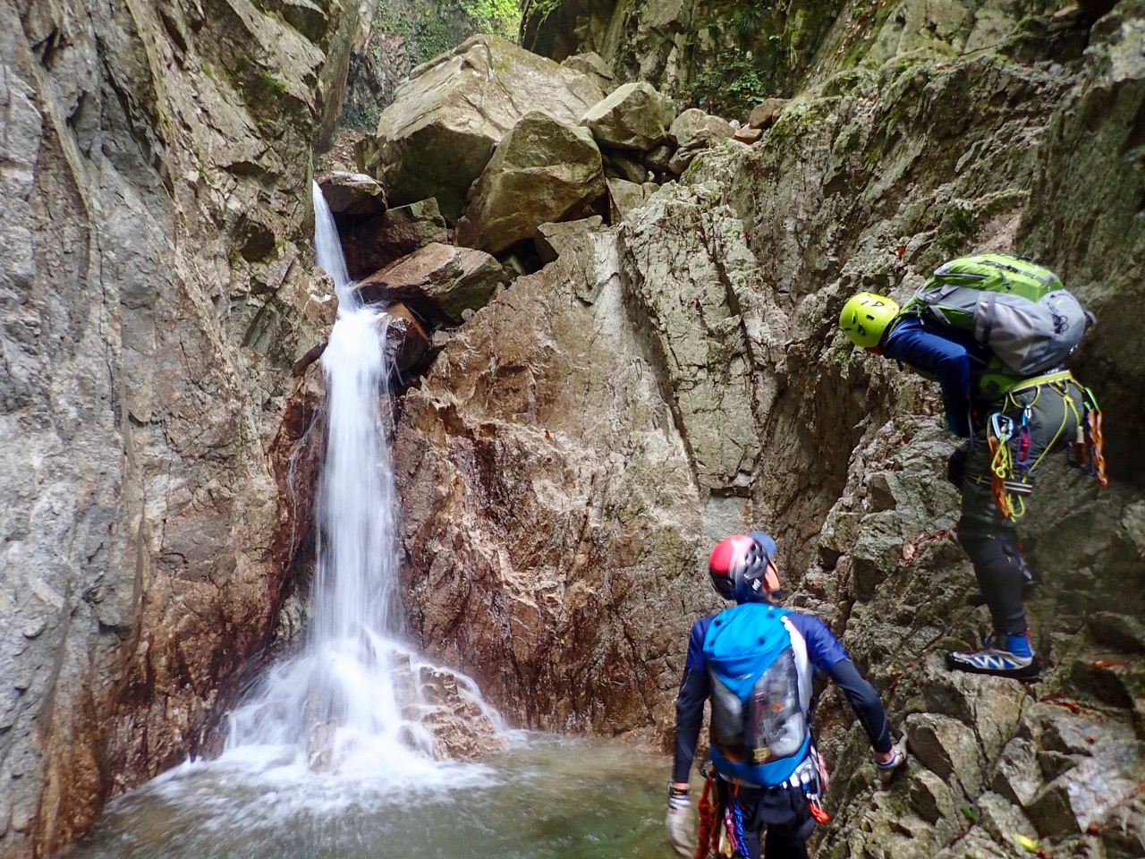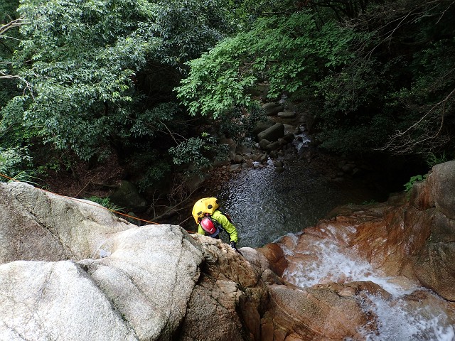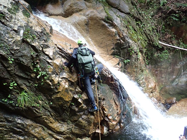最後は滝に行く手を阻まれたので懸垂下降2回。