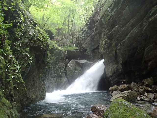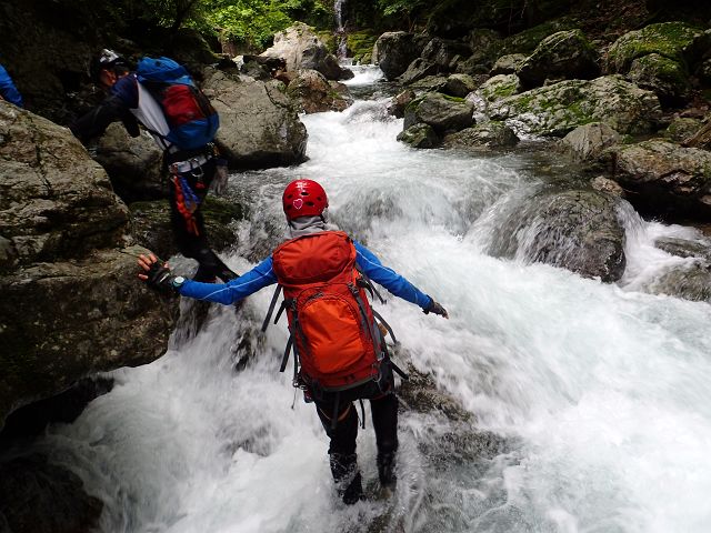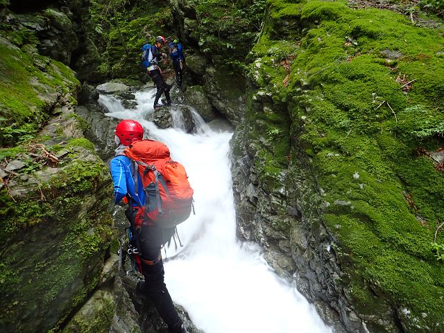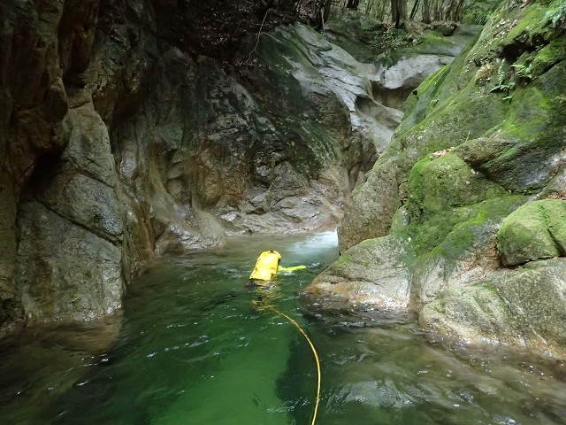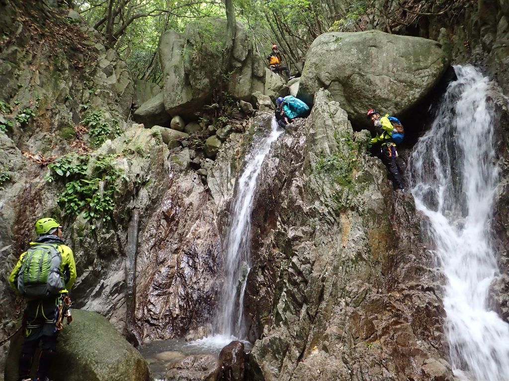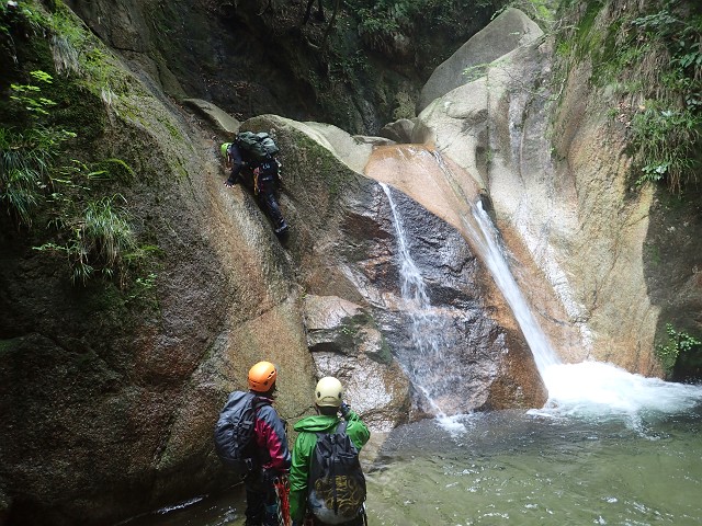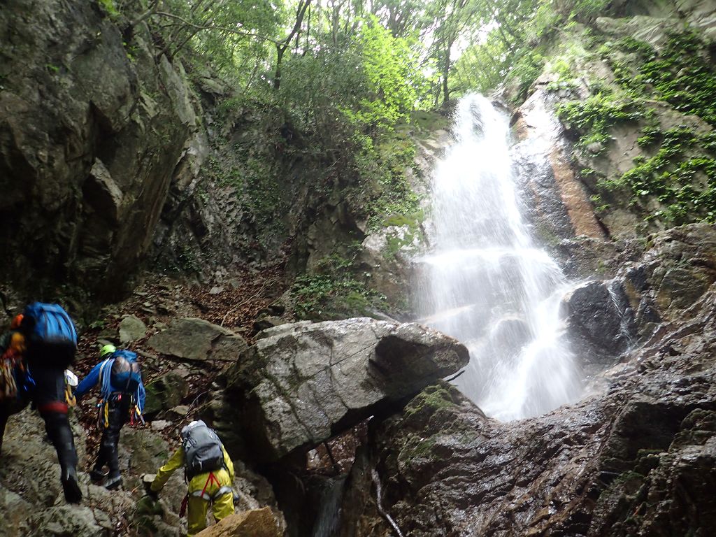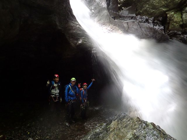 最後は滝に行く手を阻まれたので懸垂下降2回。