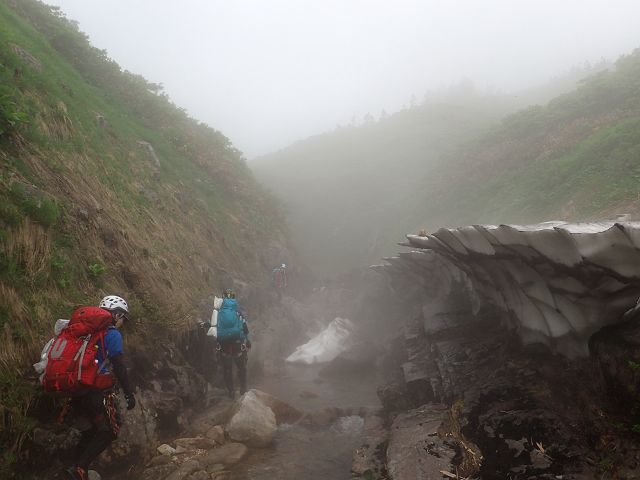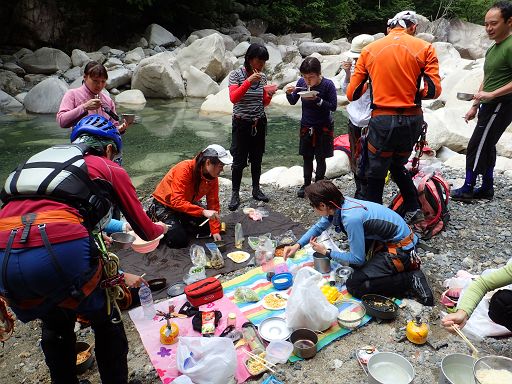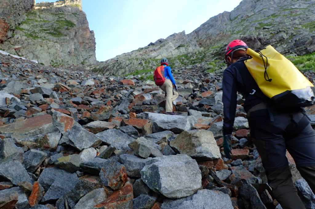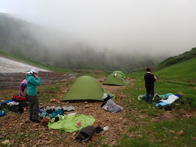 企画の公約通り? 初日はユル〜く2時間程で快適なテントサイトへ 上高地を眼下に、穂高の壁を背後に抱いた岳沢サイトにてマッタリ過ごします。 私は一人、今から旬の天狗沢お花畑へ散歩。残りの2人は・・・ 夕餉はとーさん持参のホットサンドから繰り出される料理に、胃袋を鷲掴みにされました。翌日はヘッデンスタート。天狗沢前半はお花畑、後半は私好みのガレガレ難ルート。しかし鋸岳で鍛えたとーさんは軽快に登っていきます。