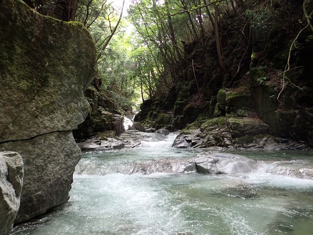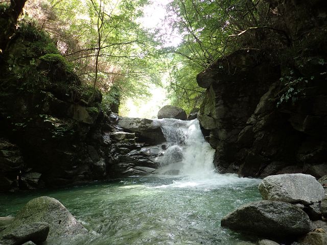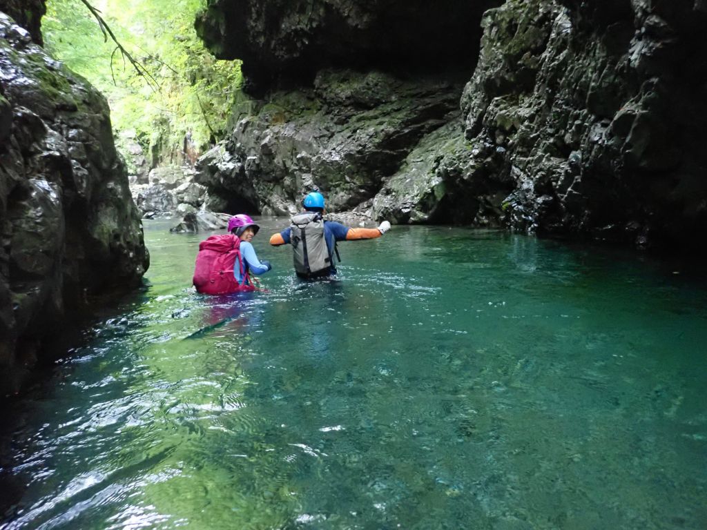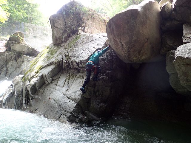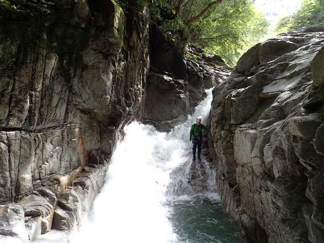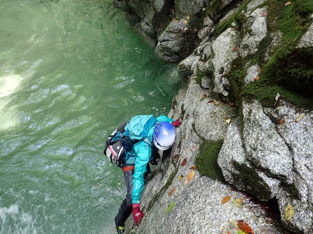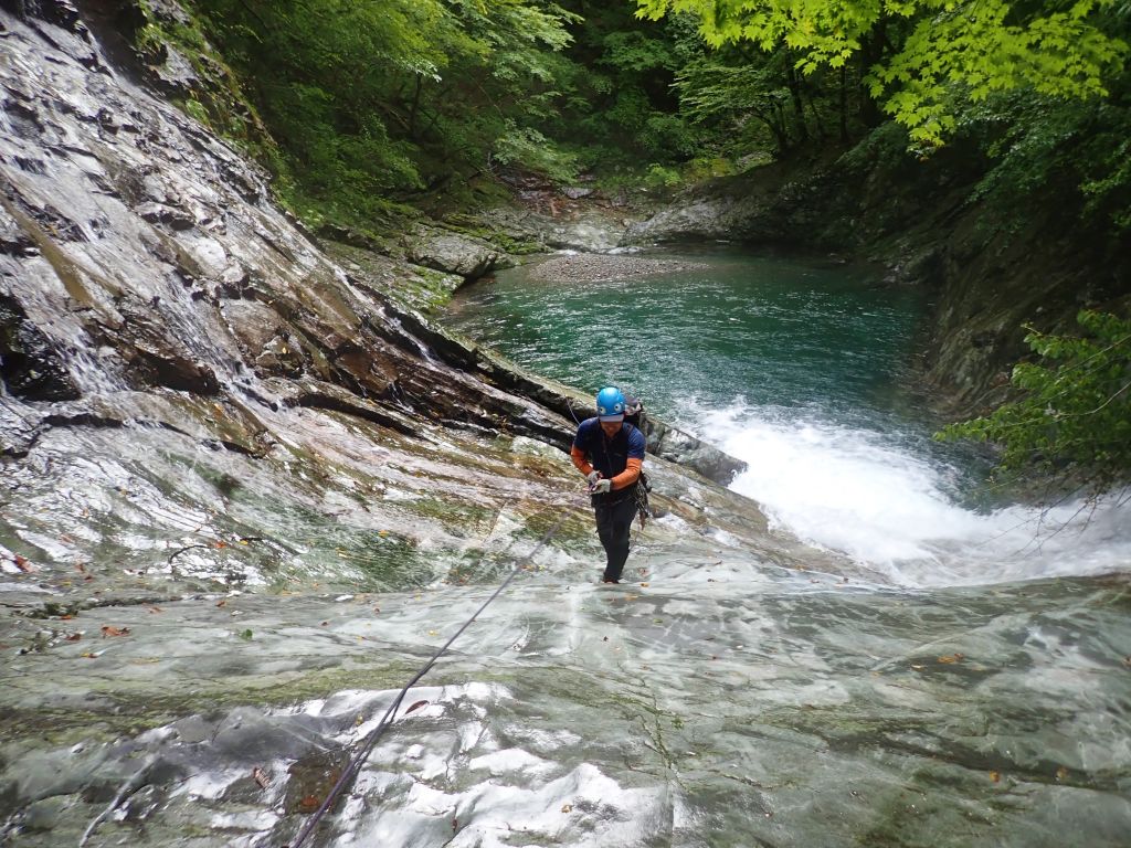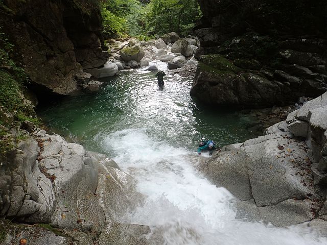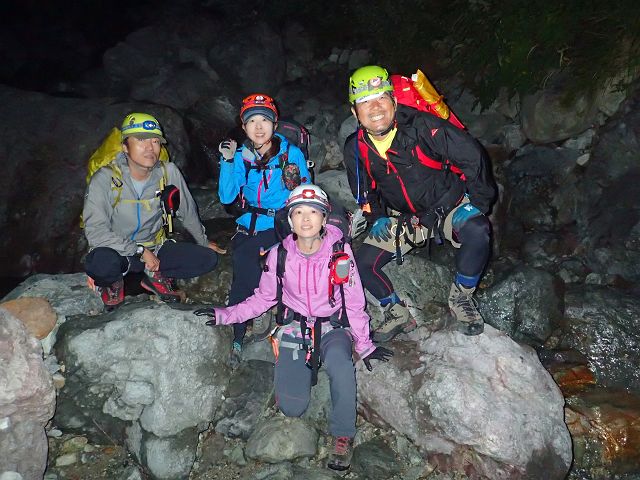 北鎌沢右俣の登りは水量が多くまるで沢登り、 それでもコースミスもなくスムーズにコルまで。