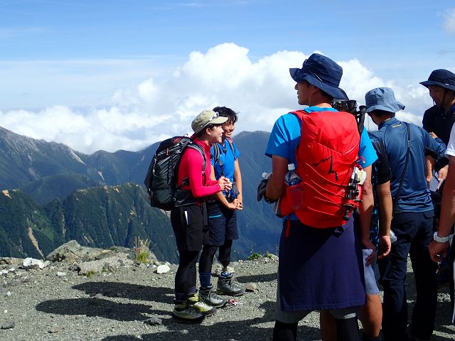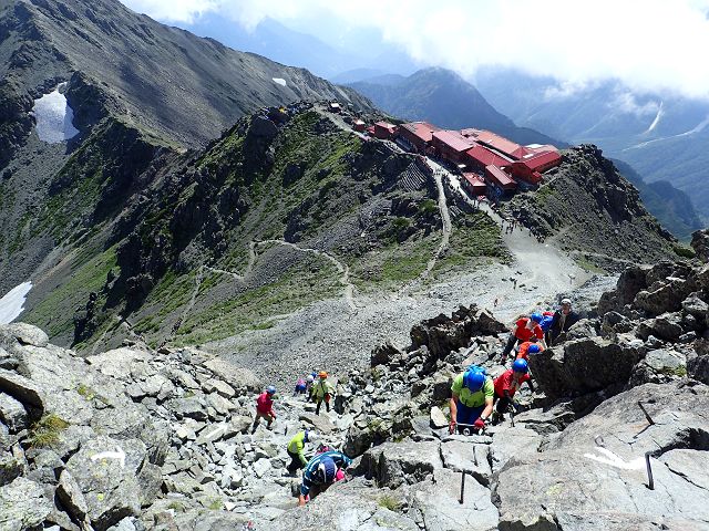 頂上から肩の小屋を見下ろすと丁度「24時間テレビ」のロケ隊が登って来る所でした。(頂上でかち合わなくて良かった・・)