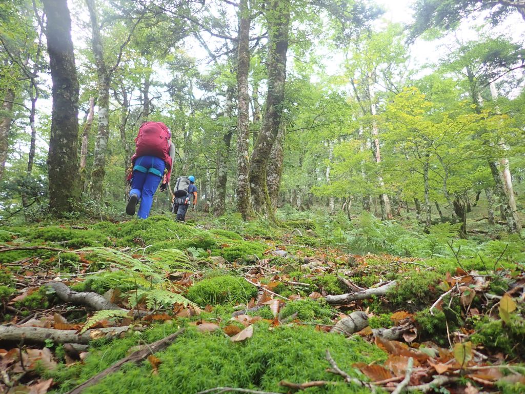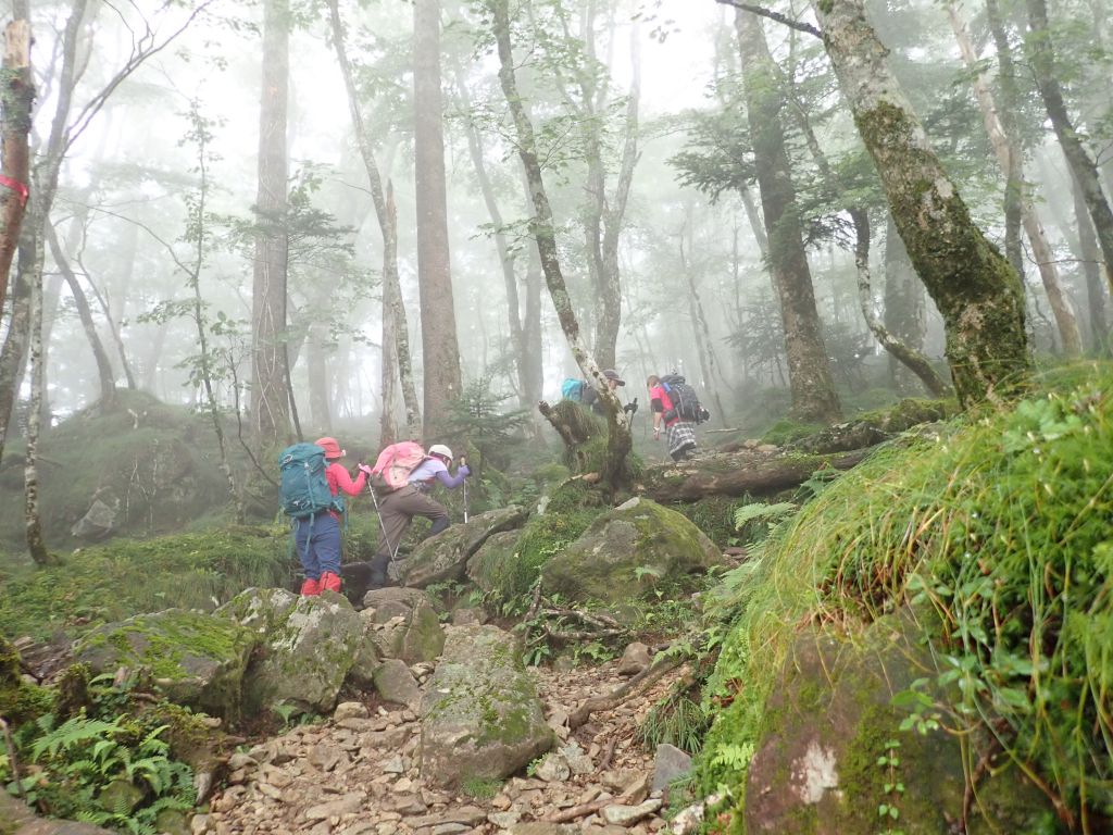 歩き始めは雨でこれは初挑戦の前回(2015年)と同じです。 雨はすぐに上がり、水俣乗越への登りも快適でした。