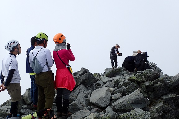 1枚目:チムニー登攀中 2枚目:槍ヶ岳山頂 3枚目:梯子の渋滞 4枚目:TV撮影中 |
