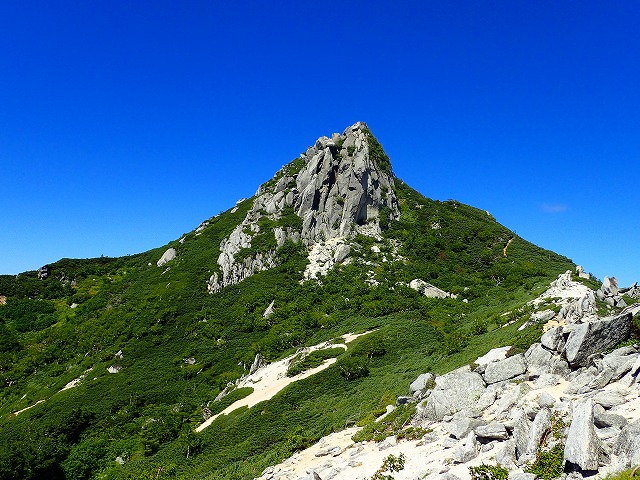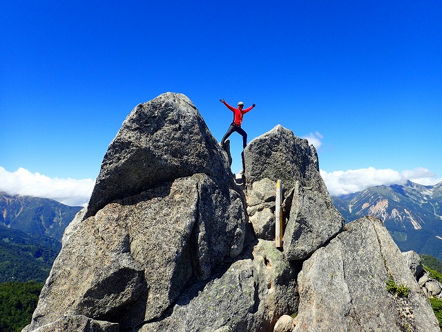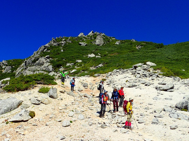 次郎さんのナビゲートももあり、ルートミスもなく独標へ 独標からはクッキリと槍ヶ岳の雄姿が。