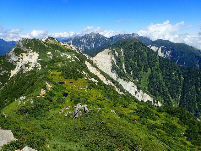 北鎌尾根に上がってからは360度パノラマを見ながらの稜線漫歩。 難所と言われる独標基部のトラバースも今の鈴ハイメンバーには何てこと無かったです。