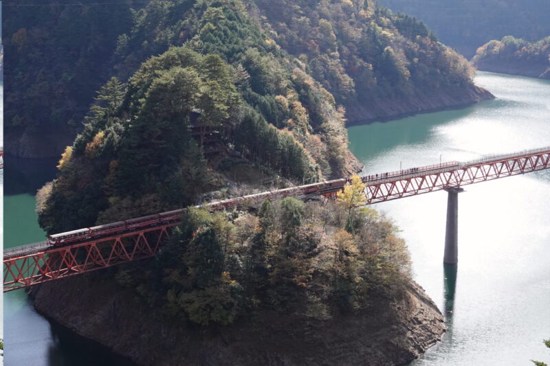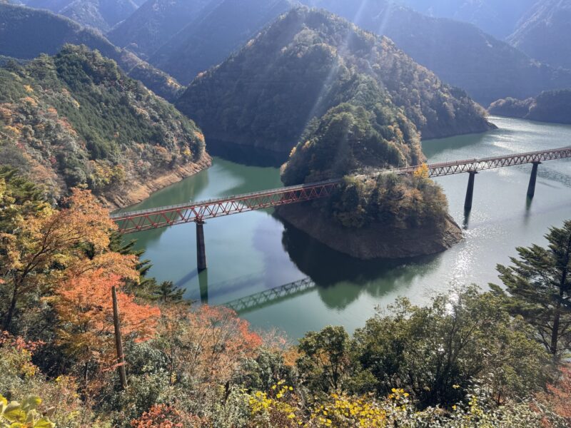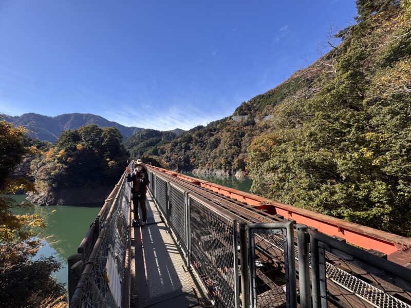 大井川鐵道の奥、寸又峡には温泉もあるし、ダム湖にかかる長い吊り橋も人気だとか。