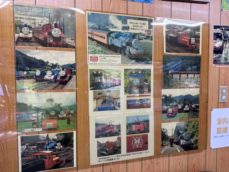 帰路はあっという間、車をとめた千頭駅まで汽車に揺られて戻ってみると、朝の暗い時にはわからなかった「きかんしゃトーマス」のキャラクターが展示されていました。