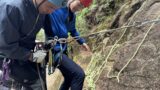 先ずは二人共に久しぶりのロープワークをお互い確認し合い、上に行ったらどうするのかを安全な下のリングボルトを使って確認。