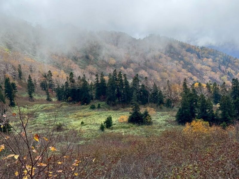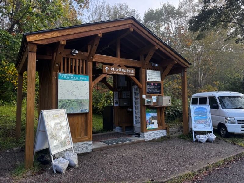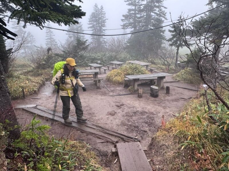 2日目の土曜日は前線通過で大荒れ、妙高山は雨まじりの強風が吹き荒れる予報だったので、午前中に下山し、温泉に入って、近くの苗名滝やビジターセンターを観光して帰りました。