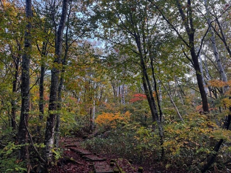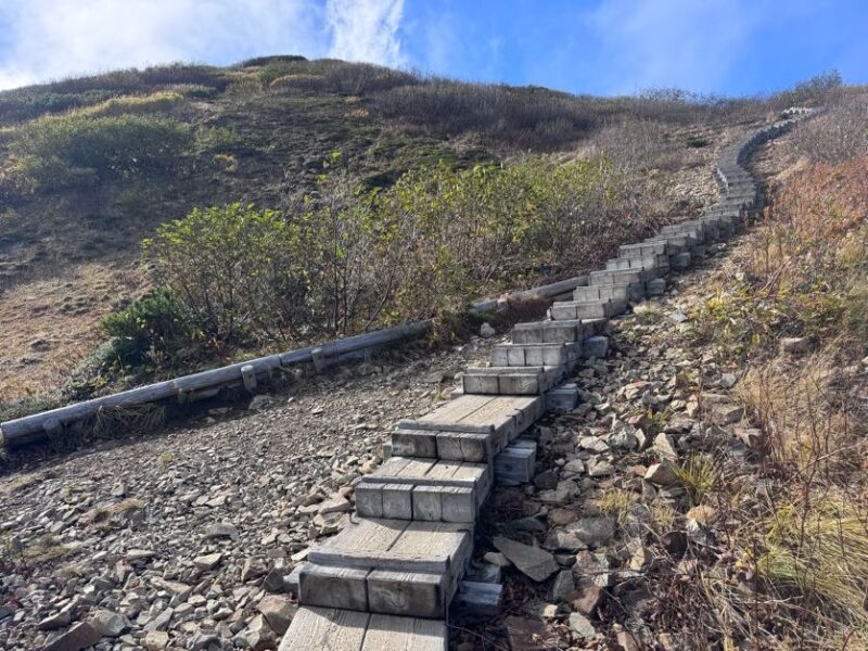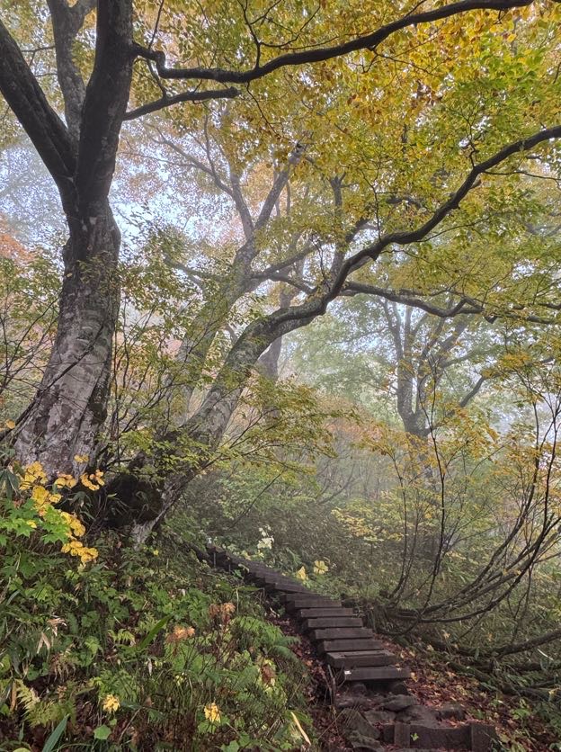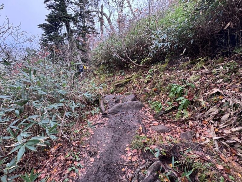 登山口からしばらくはゆったりとした木道歩きですが、黒沢橋を過ぎて間もなくすると十二曲がりのジグザグ急登。