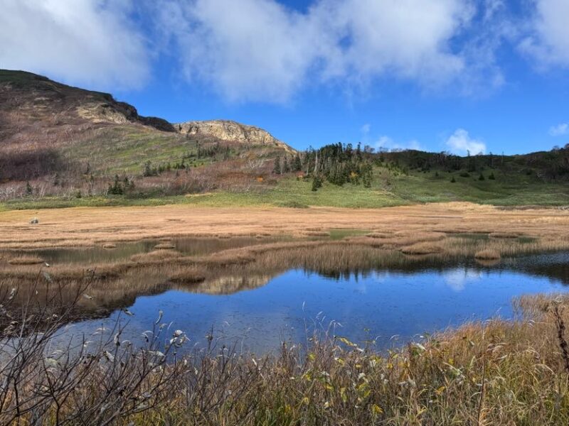 すみすみちゃんは楽しみにしていた高谷池の池塘の眺めに大満足。