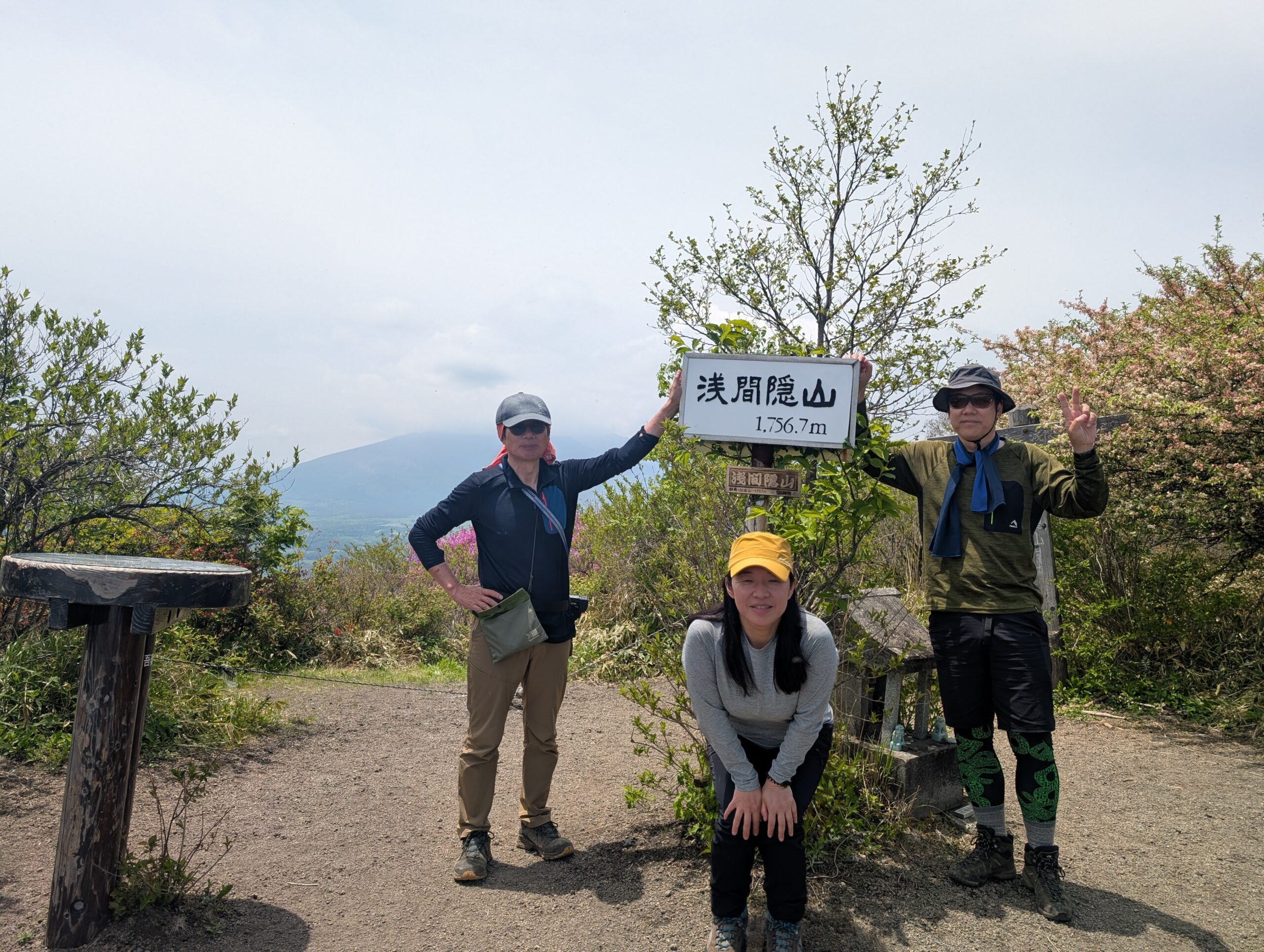 11時半、遅刻組が浅間隠山頂上に到着、ようやくメンバー3名集合、集合写真を撮って、更に30分も浅間隠山頂上に滞在、はるさんは都合2時間も頂上に釘付けに。ほんますいません🙇♂️