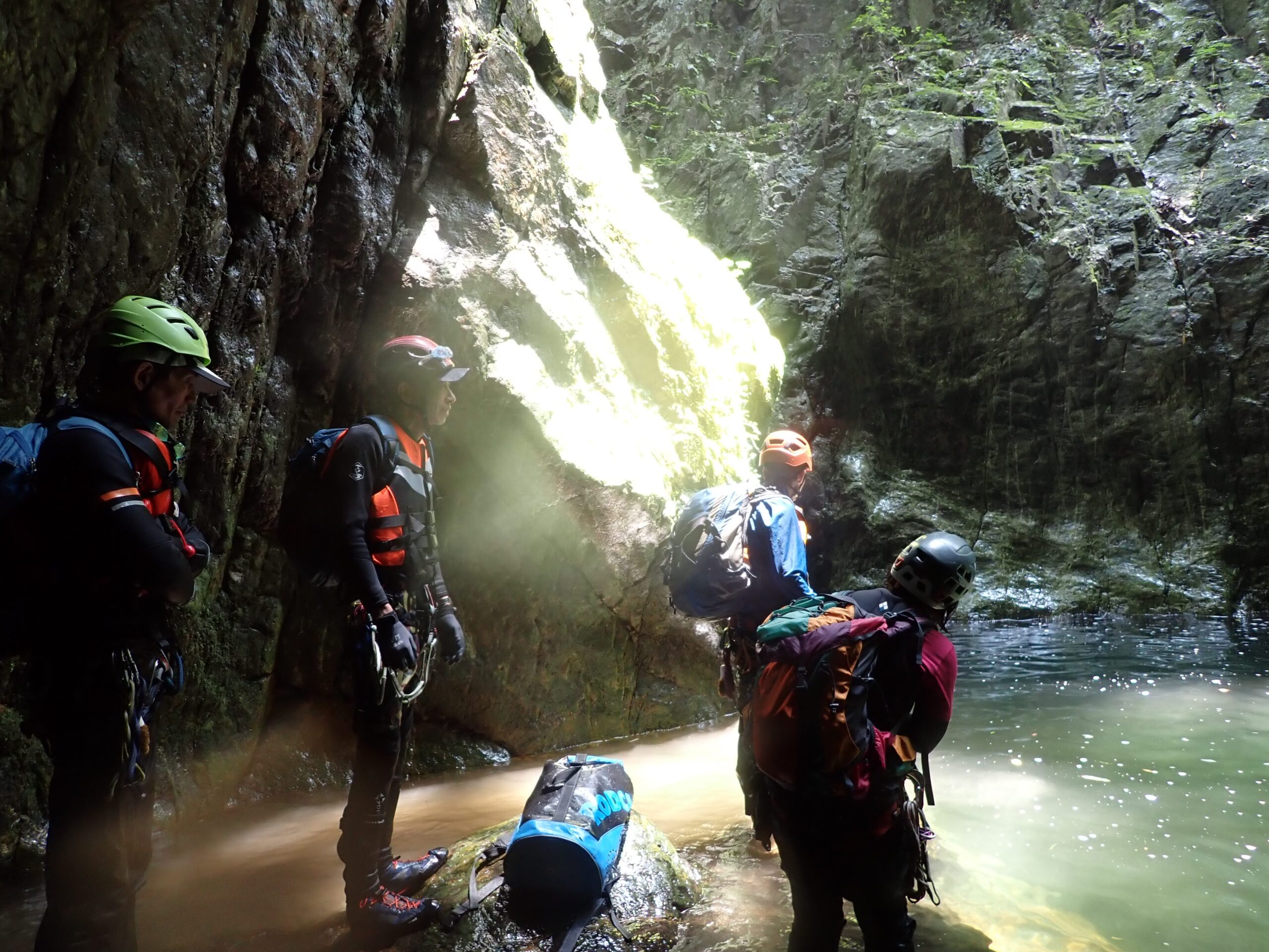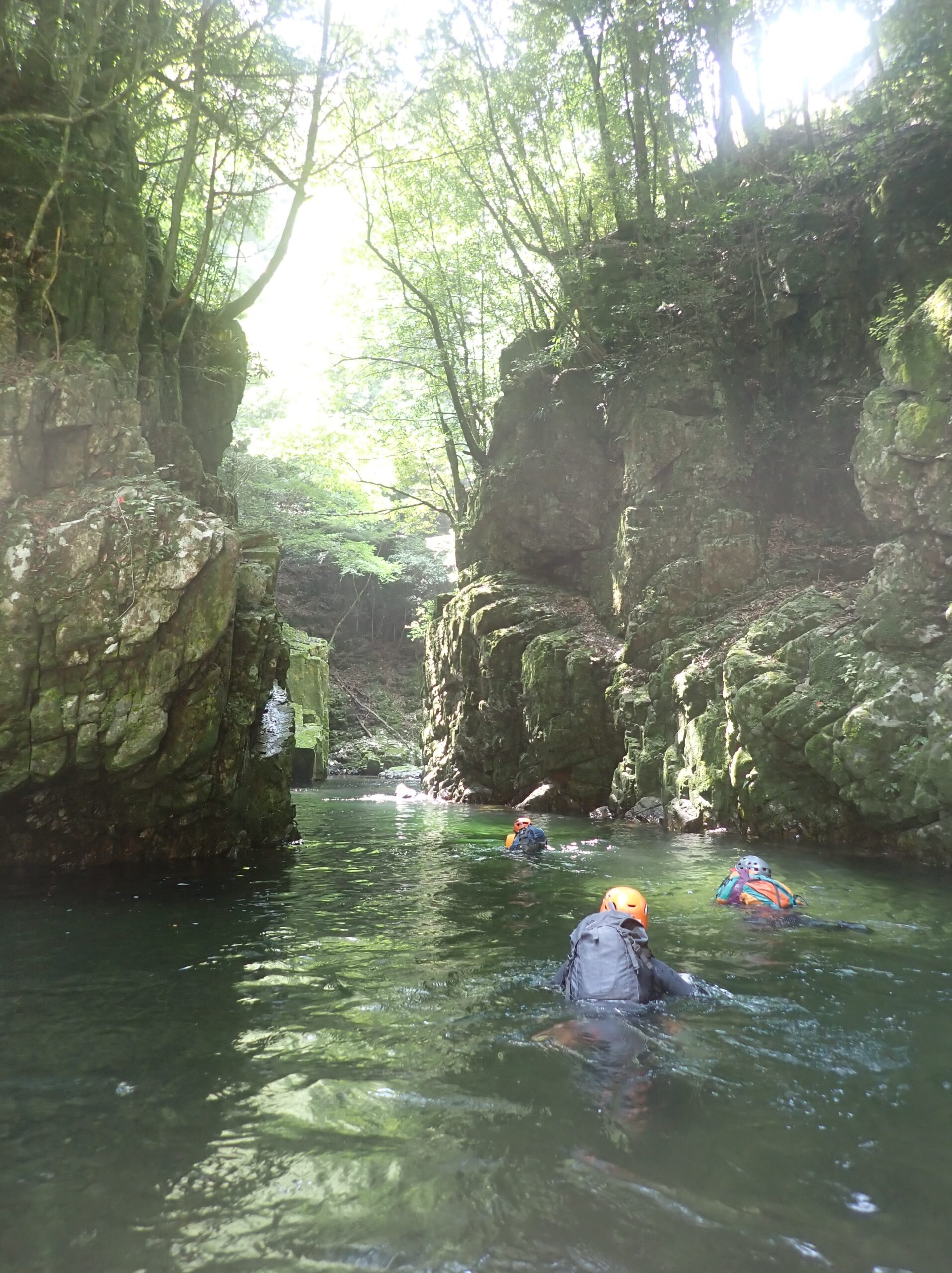 ゴルジュの中をほぼ泳いで通過する葛川本流は、めったにない特異なタイプの沢だった。みんなにも好評でぜひ再訪したいとの声があったので、来年また行く事になるだろう。その時はあなたも一緒に泳ぎにいきませんか。