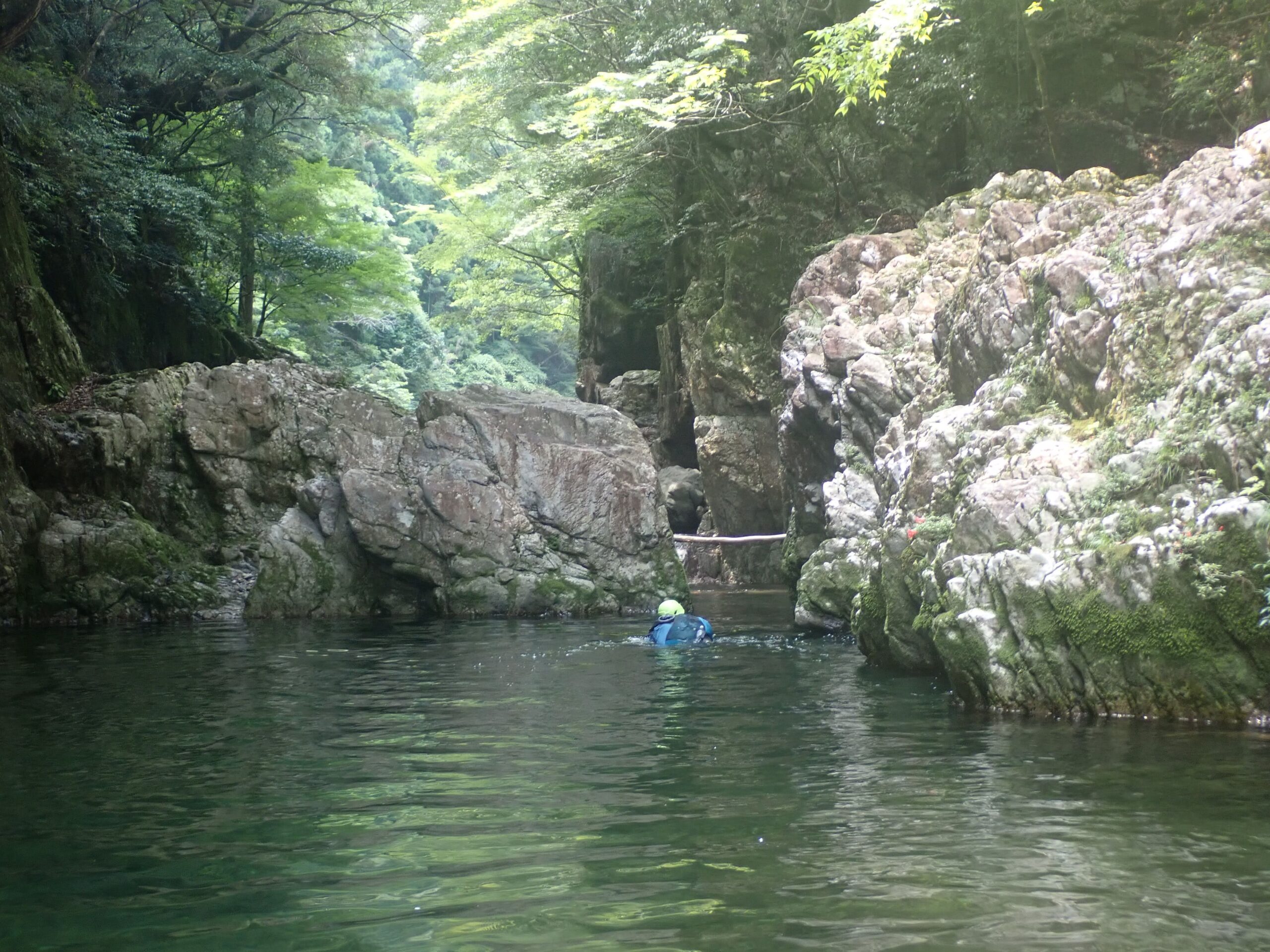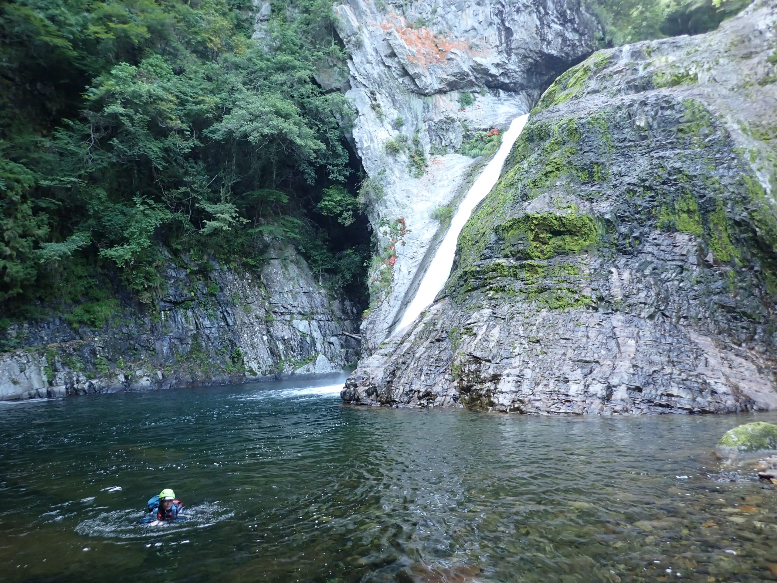 今年は早々に梅雨が明けたので、大峯を代表する泳ぎ沢、葛川本流へ行ってきた。この沢は2016年、増水時に入渓し、あわやの事故を発生させた曰くつきの谷だ。9年を経て、ようやく鈴ハイで再訪できた。