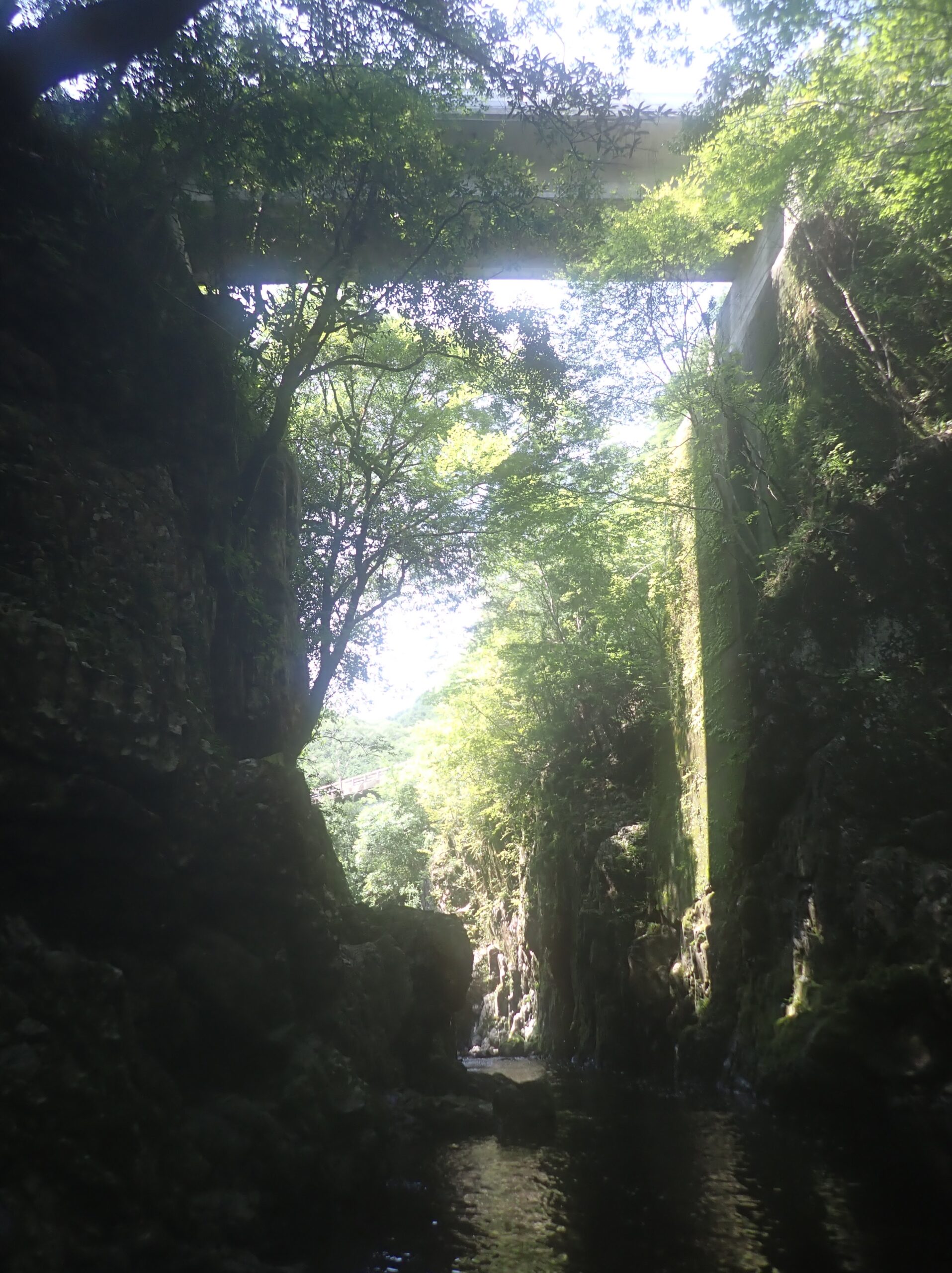 その後もどんどん泳いでいく。ミニナイアガラで記念撮影し、大渡の橋の下を潜ってもまだ半分。げっぷが出てくる。