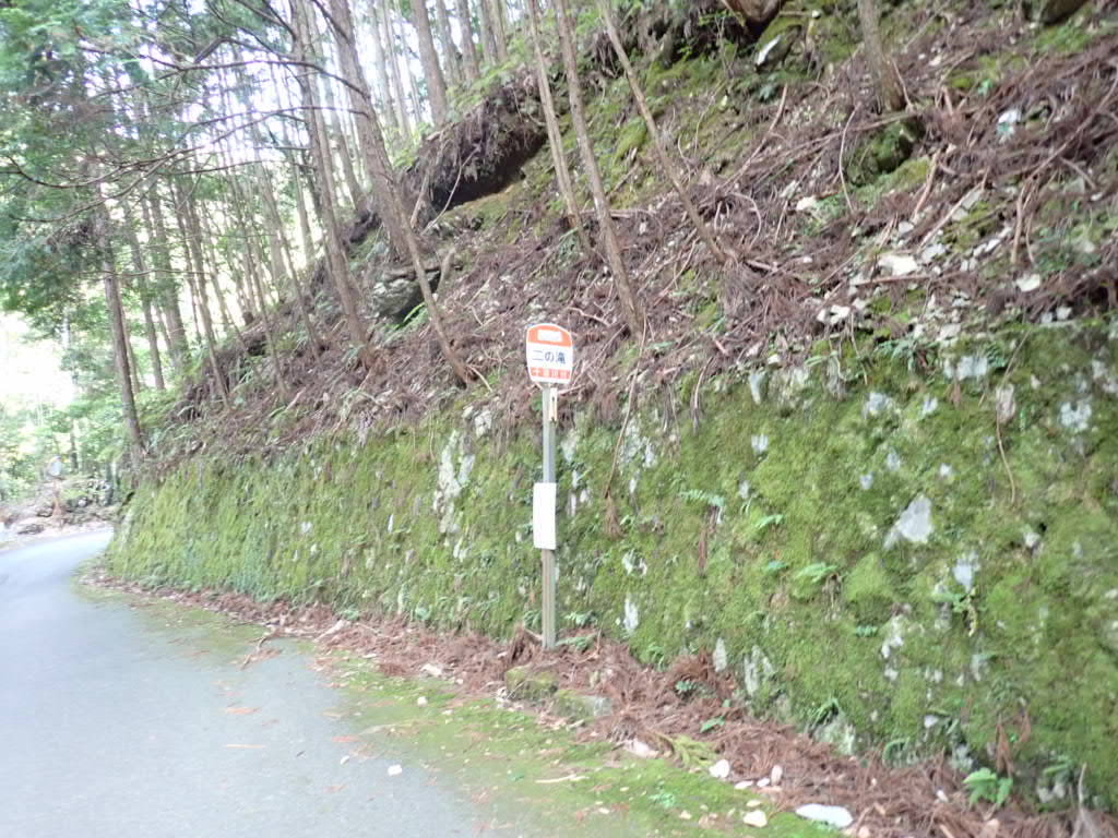 一ノ滝を超えてしばらく進むと谷は大きく開け、二ノ滝が現れた。みんなもう満足しきったようなので、二ノ滝は巻かず、右岸の支谷を辿って道路まで登る。(二ノ滝見物用の道になっているようで、バス停もあった)