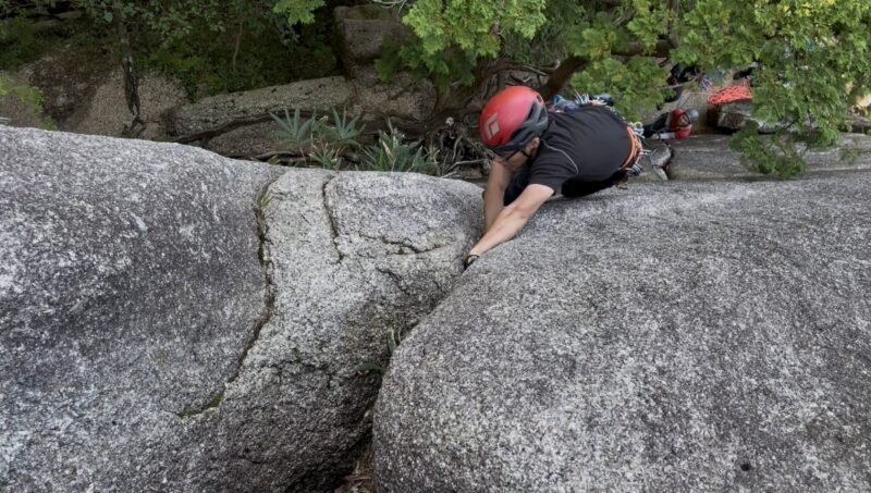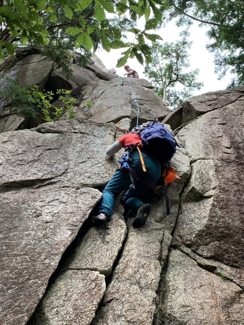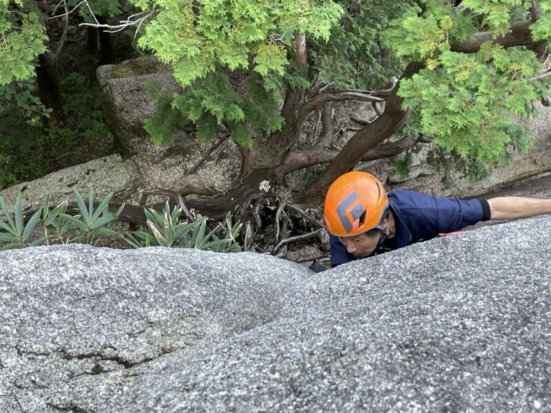 何とか落ちずに登れましたが、カムをセットしながら登るのはシビれました。むしろ落ちたくないプレッシャーがあったから登れたかもしれません。