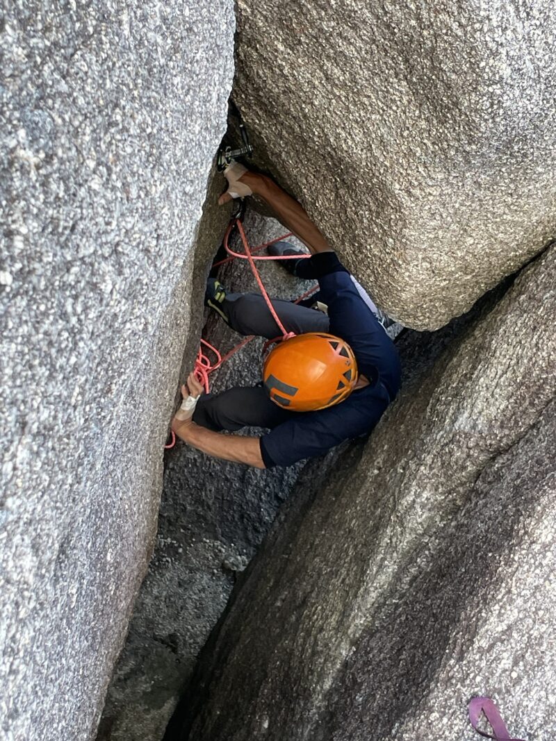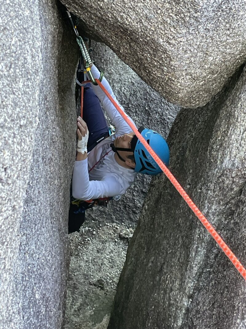そのあとは居心地のいい岩の隙間で全員分の荷上げをし、休憩してから終了点に至るチムニーに挑みました。