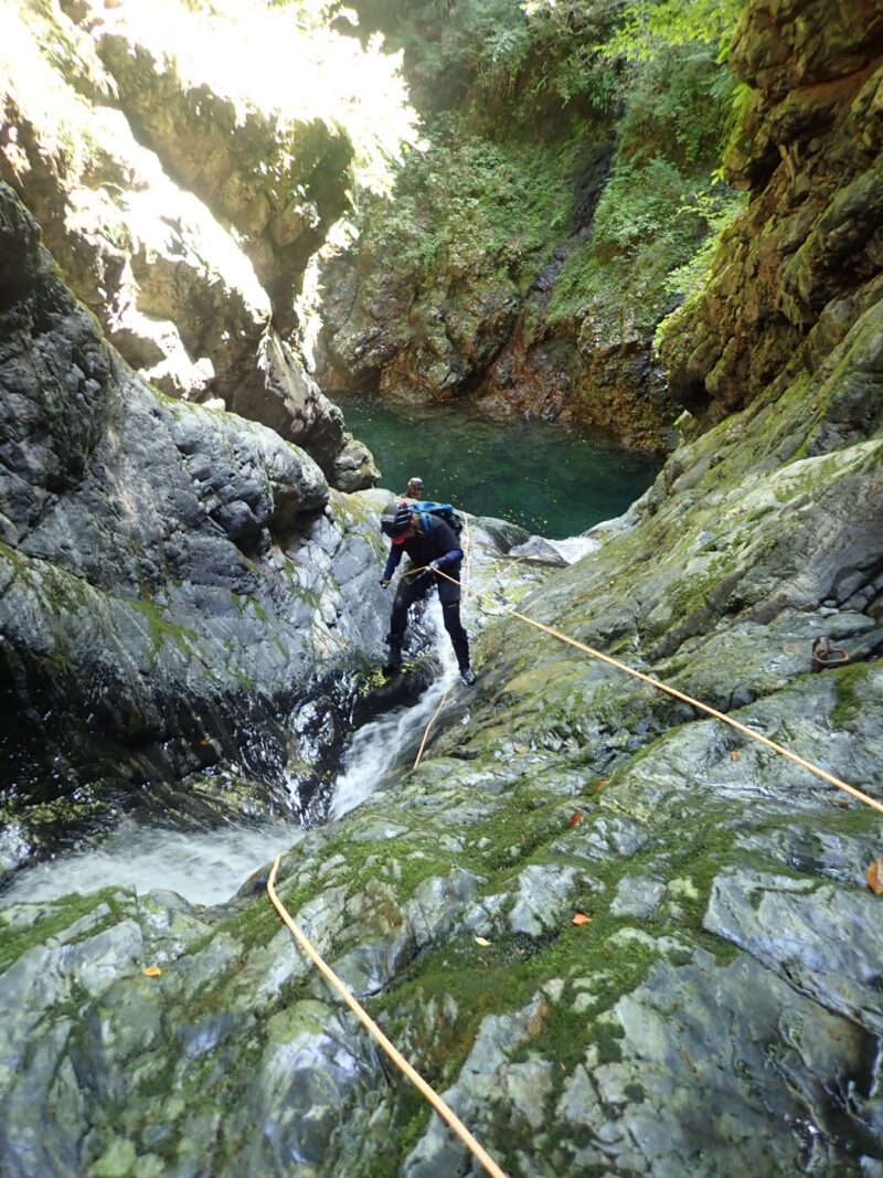 過去2回企画してもらっていて、滝の裏側から見る景色が秘境感満載の凄そうなところです。行ってみたい!けど私はキャニオニングをやったことがないのでどうかなぁと思っていたら、懸垂下降が出来ればフォローしてくださるとのことで、参加させてもらいました。