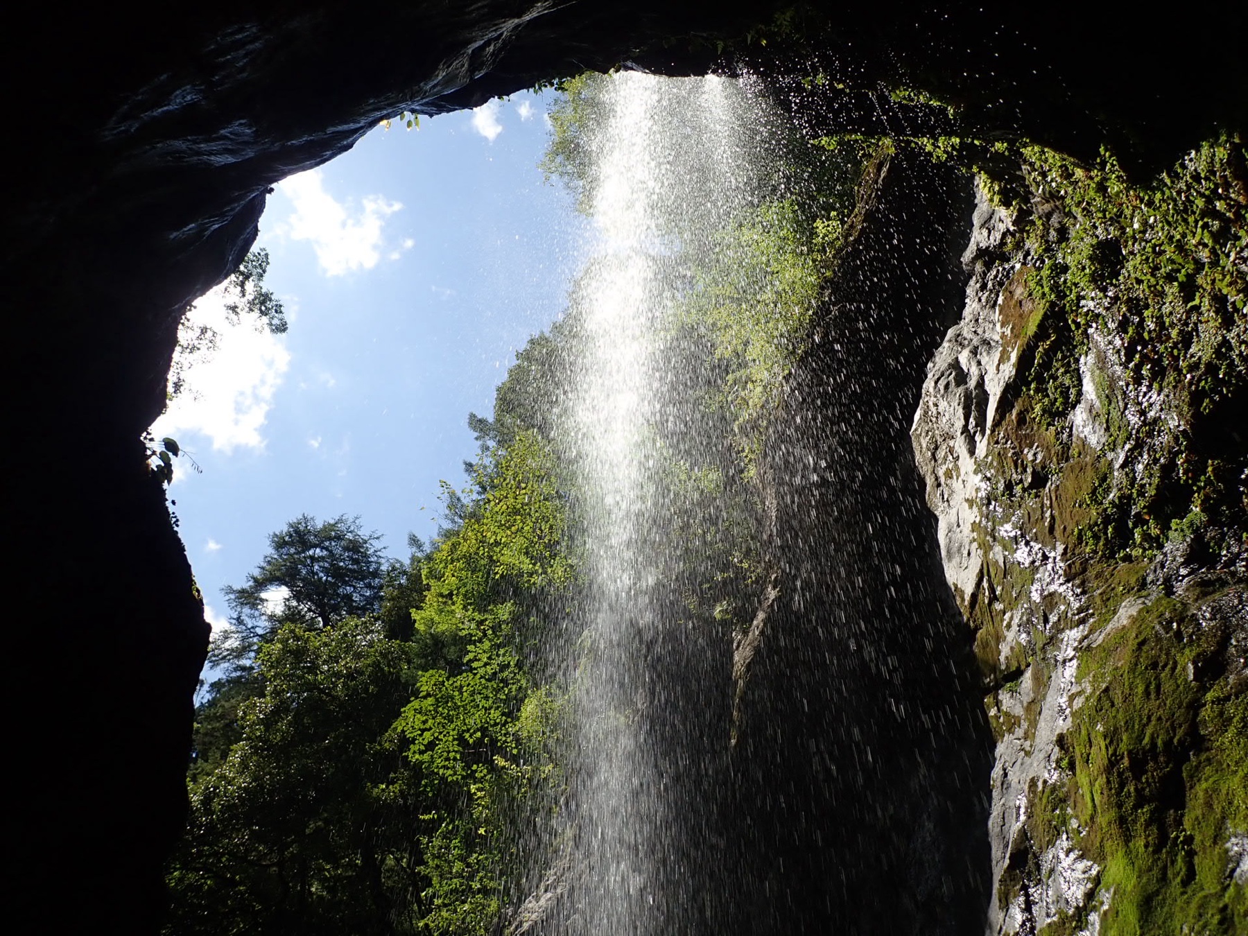 無事降りて、みんなが叫んでいた訳を聞いたら、叫んでいたのは降りている人ではなくリーダーのてつやさんが下から雰囲気出すためにブラボーとかヒューヒューとか、ヤジを飛ばしていたそうです。みんなが居る滝の裏側を見学したり写真撮っていたら、最後尾のユウさんがあっという間に降りてきました。すごい速さでした(・・;)