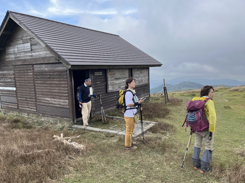 ここらで昼食タイムでしたが、相変わらず風がすごかったですが、時間がかなり余裕があったので、予定にはなかったですが、霊仙山避難小屋まで足を伸ばし、快適な昼食タイム&昼寝タイムとなりました。