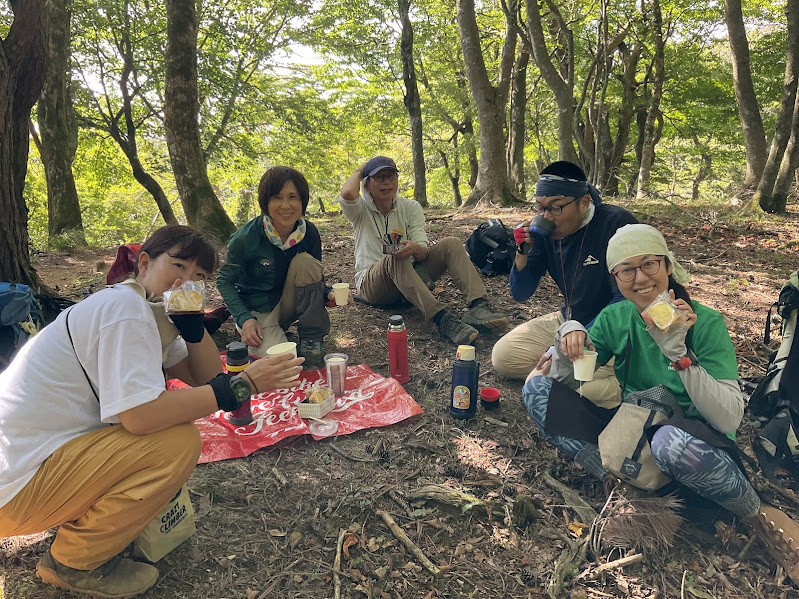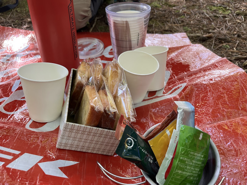 そんな下山道にも楽しみがあって、激下りの前の最後の平地でずみカフェが開催されました。