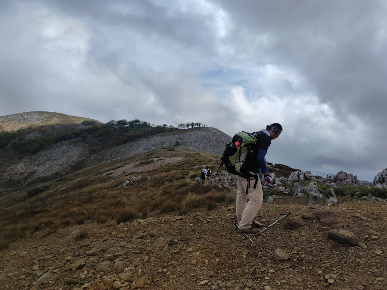 稜線といってもカルスト地形は続きますので歩きにくいですが、見渡す景色は雄大そのもの。