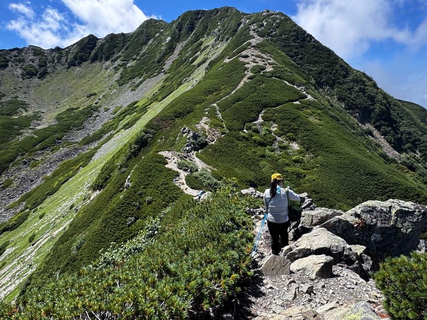 楽勝やん!と思ったら、初日の仙丈ケ岳は寝不足のせいか高所のせいか、登り始めから息が上がってモーロー、貧血状態。