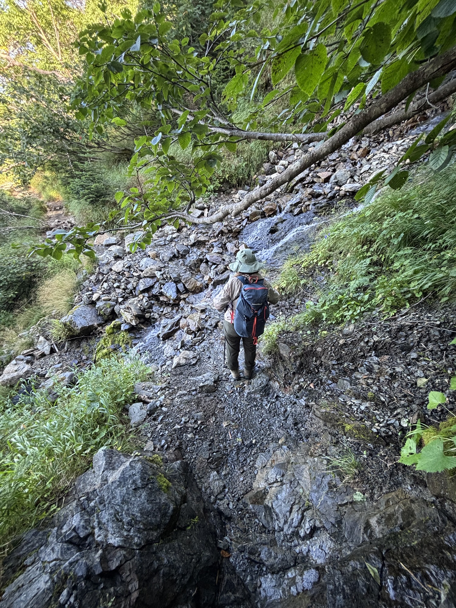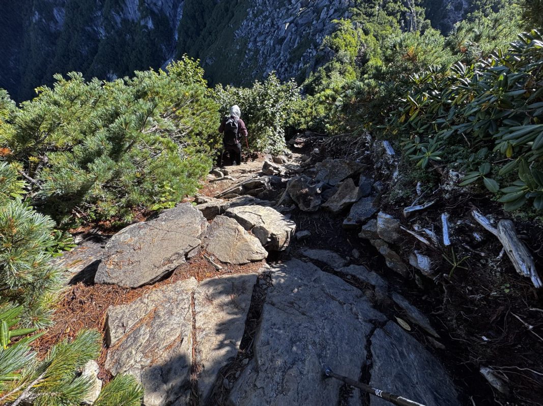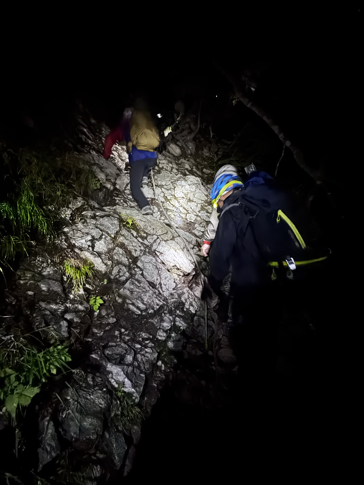 ヘッドランプで足元を照らしつつ進んでいると団体さんがおられたので道を譲りました。