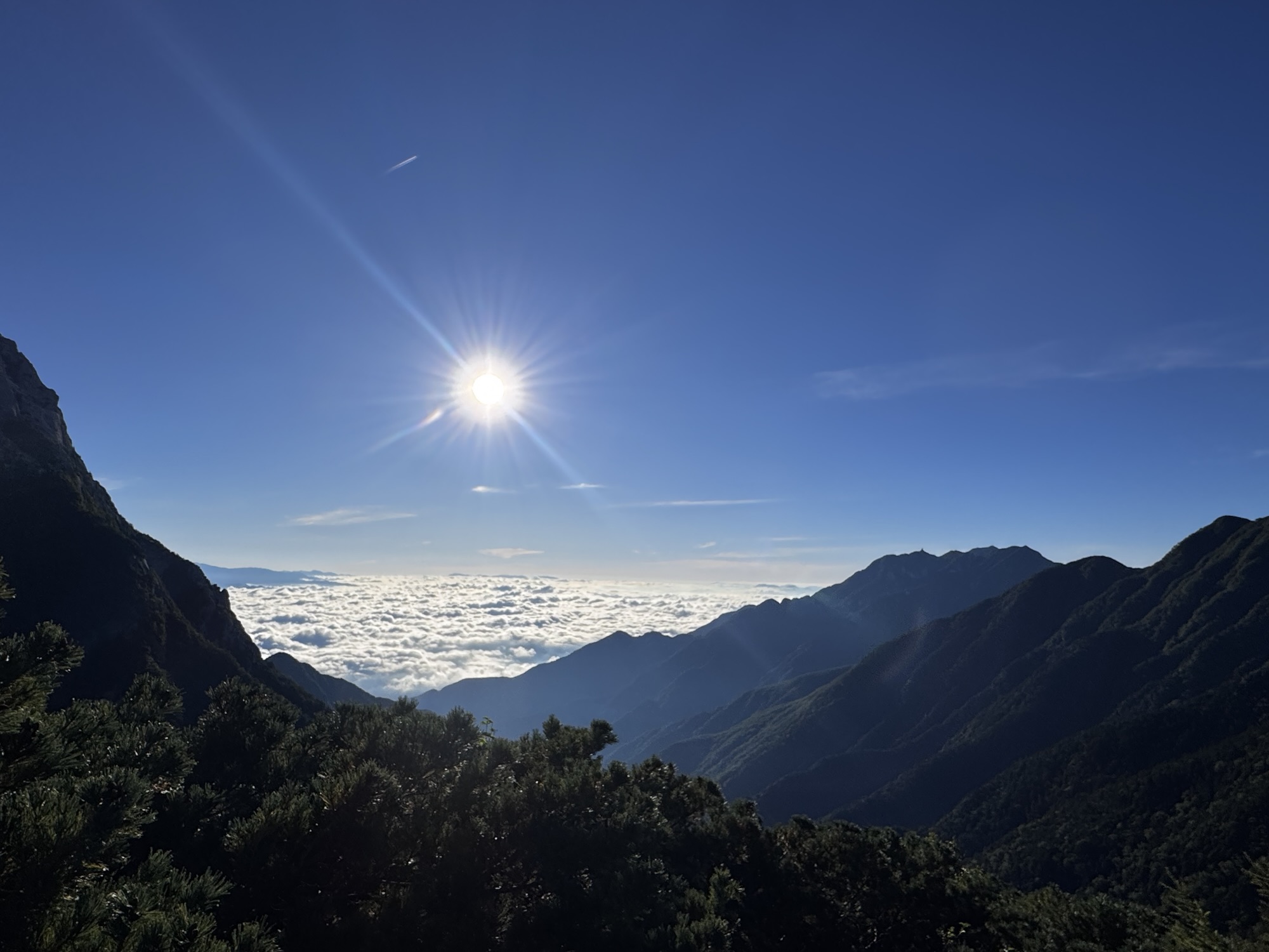 その後はスムーズに進み、仙水峠に着いたころ雲海の向こうに太陽が昇りました。