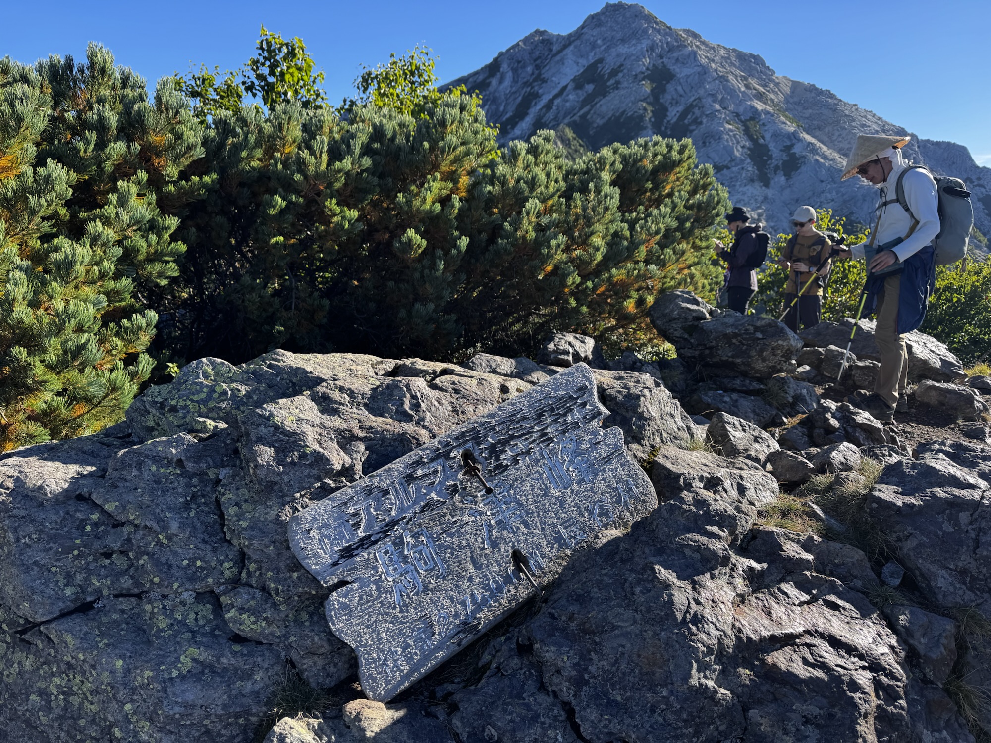 鈴ハイ一軍なら当然ヘルメット持参で直登コースへ驀進でしょうし、(そもそも黒戸尾根から攻めるか)摩利支天にも寄りたいところですが、今回リーダー(私か)がヘナチョコで、とにかく帰りのバスの時間があるのでまたまた涙を呑んで(喜んで)巻コースから直接頂上へ。